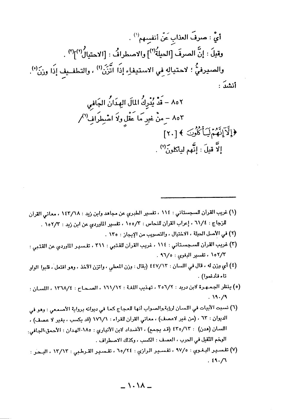 وقيل: إن الصرف [الحيلة] والاصطراف: [الاحتيال]. والصيرفي: لاحتياله في الاستيفاء إذا اتزن، والتطفيف مإذا وزن. أنشد: