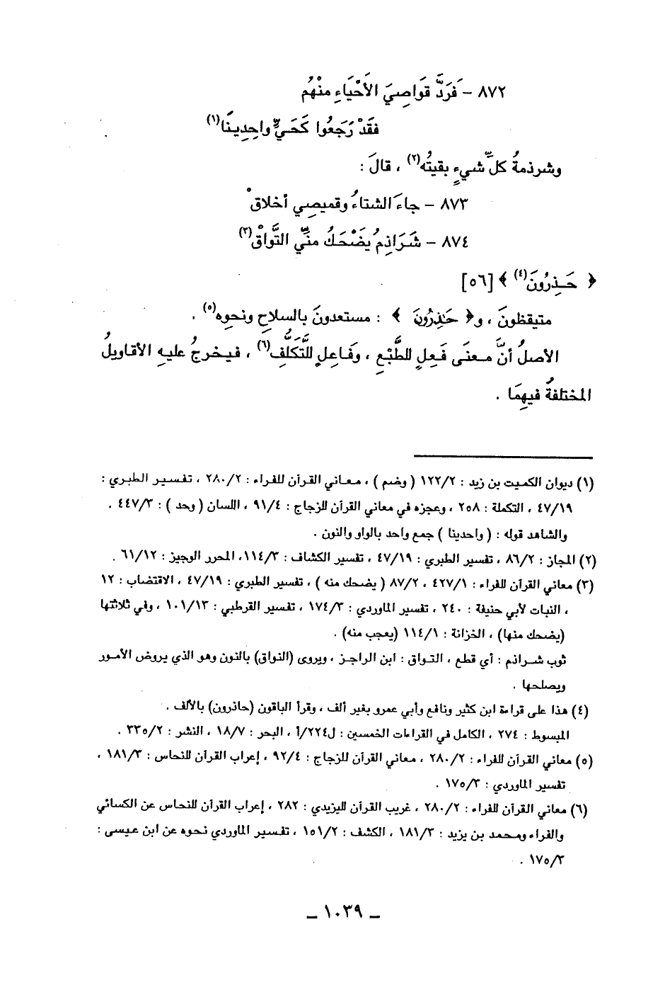 872 - فرد قواصي الأحياء منهم ... فقد رجعوا كحي واحدينا.