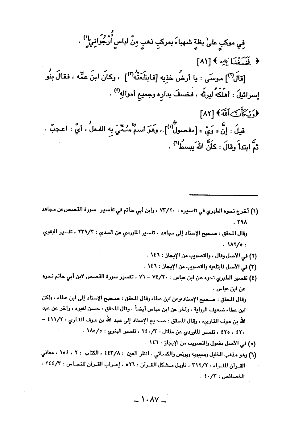 في موكب على بغلة شهباء بمركب ذهب من لباس أرجواني. (فخسفنا به)