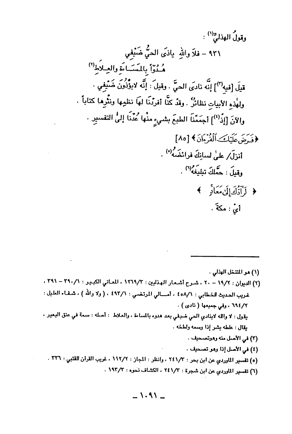 931 - فلا والله ياذى الحي ضيفي ... هدواً بالمساءة والعلاط. وقيل [فيه] إنه نادى الحي، وقيل: إنه لا يؤذون ضيفي.