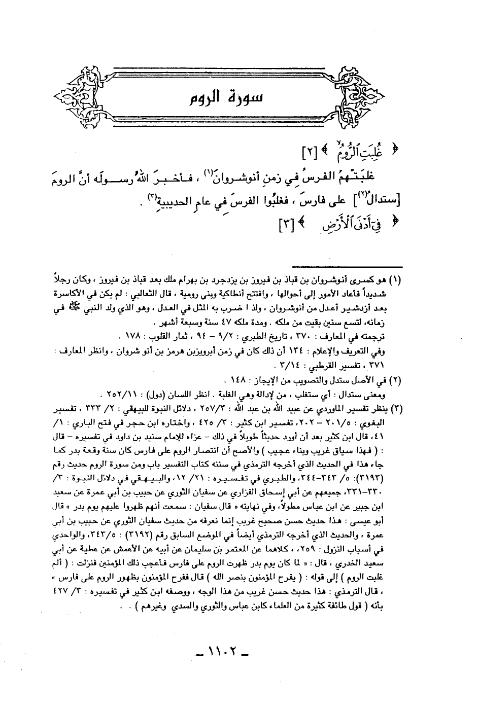 غلبتهم الفرس في زمن أنوشروان، فأخبر الله رسوله أن الروم [ستدال] على فارس، فغلبوا الفرس في عام الحديبية.