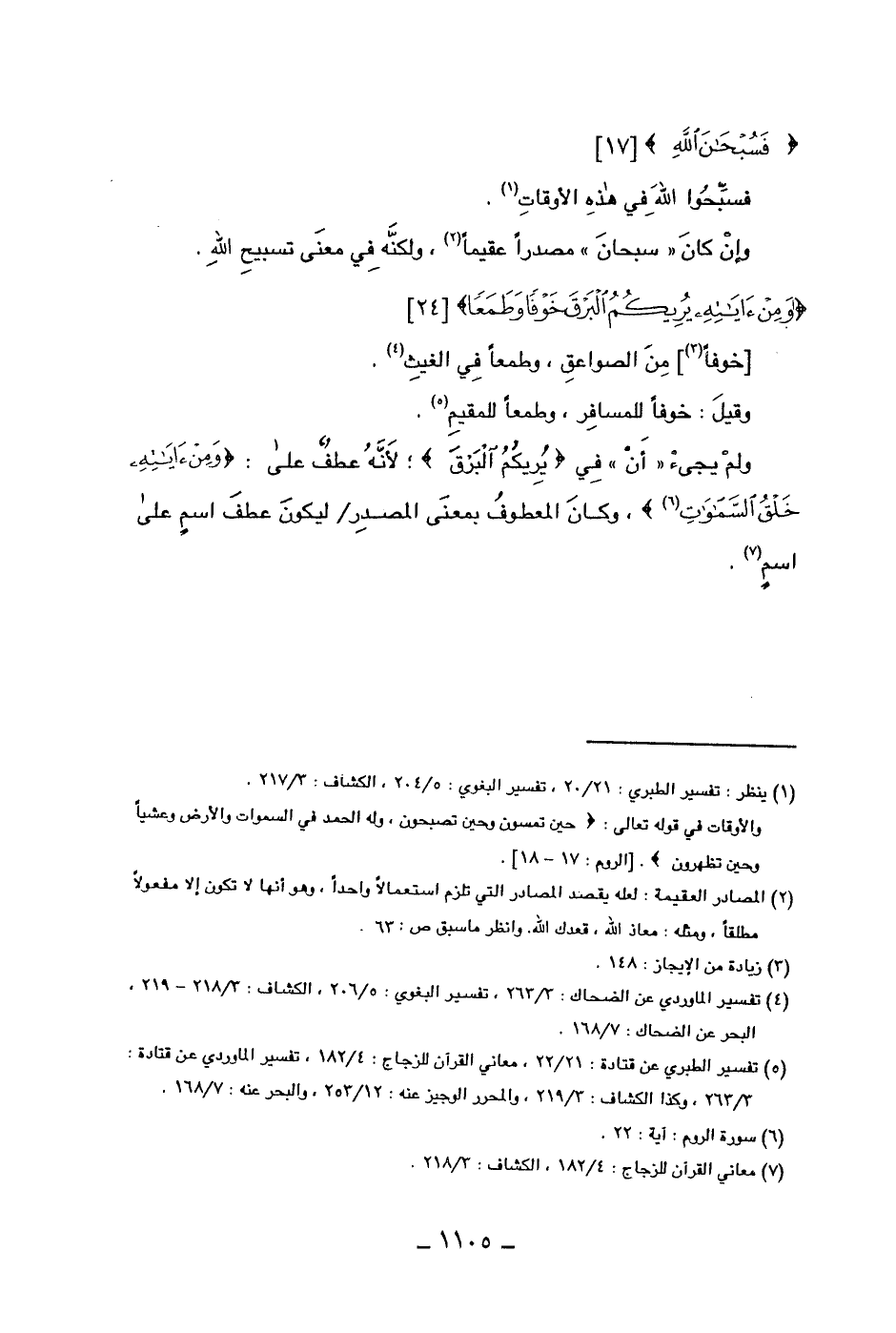 وإن كان "سبحان" مصدراً عقيماً، ولكنه في معنى تسبيح الله. (ومن ءاياته يريكم البرق خوفاً وطمعاً)