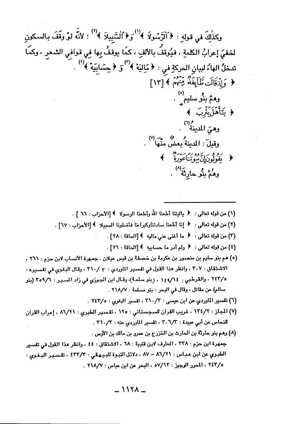 وكذلك في قوله: (الرسولا) و (السبيلا)، لأنه لو وقف بالسكون لخفي إعراب الكلمة، فيوقف بالألف، كما يوقف بها في قوافي الشعر، وكما تدخل الهاء لبيان الحركة في: (ماليه) و (حسابيه). (وإذ قالت طائفة منهم)