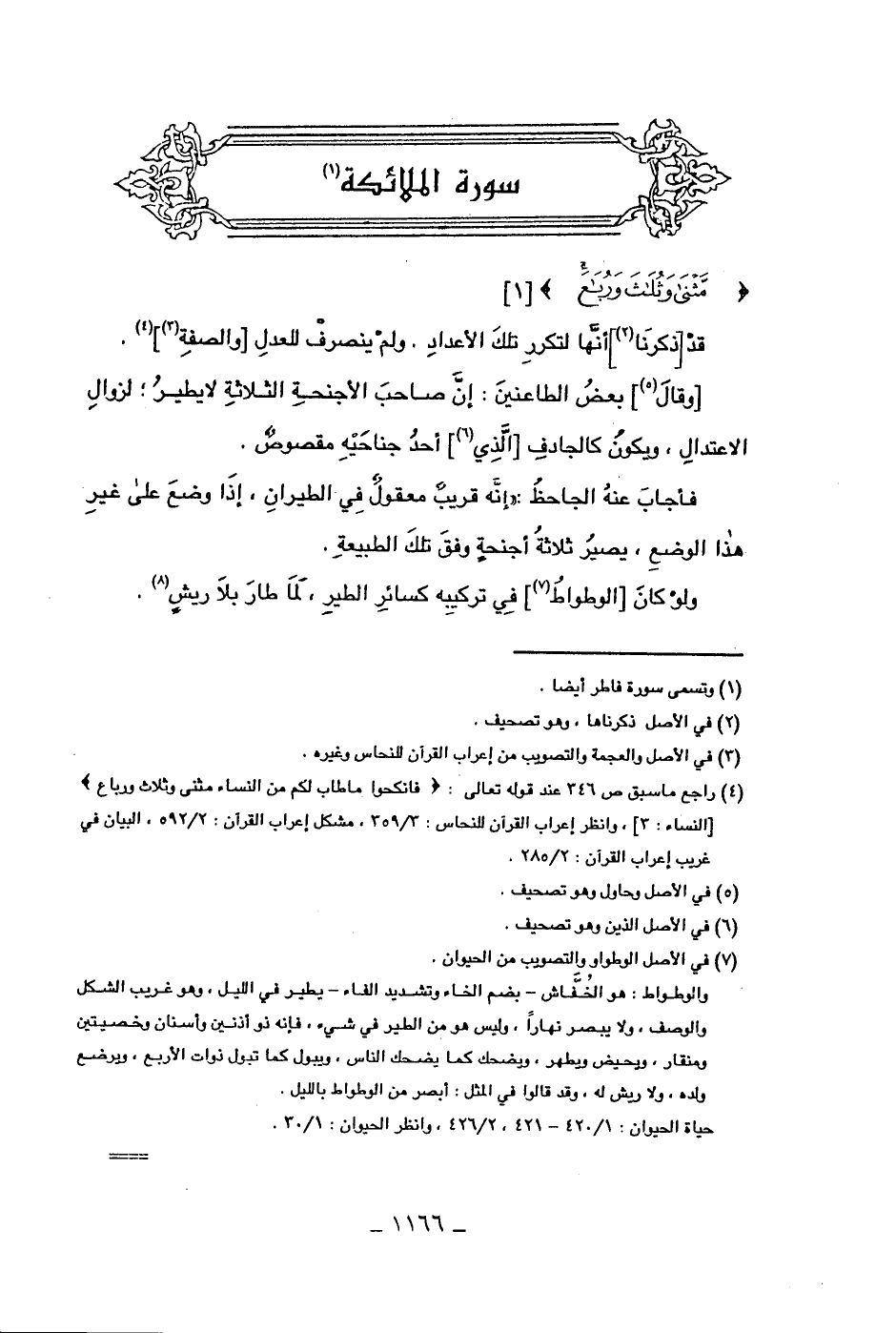[وقال] بعض الطاعنين: إن صاحب الأجنحة الثلاثة لا يطير، لزوال الاعتدال، ويكون كالجادف [الذي] أحد جناحيه مقصوص.