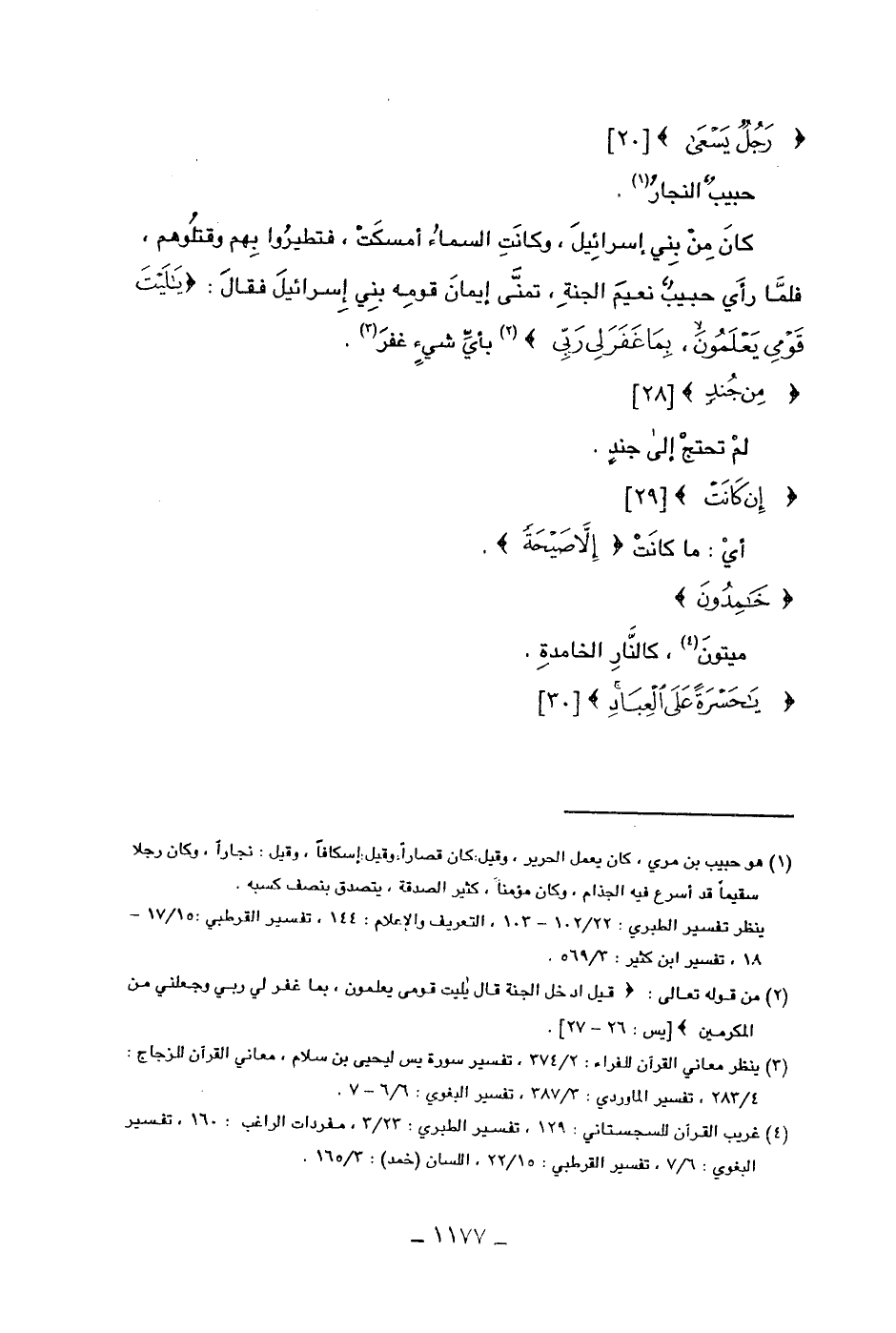 كان من بني إسرائيل، وكانت السماء أمسكت، فتطيروا بهم وقتلوهم، فلما رأى حبيب نعيم الجنة، تمنى إيمان قومه بني إسرائيل فقال: (يا ليت قومي يعلمون بما غفر لي ربي) بأي شيء غفر.
