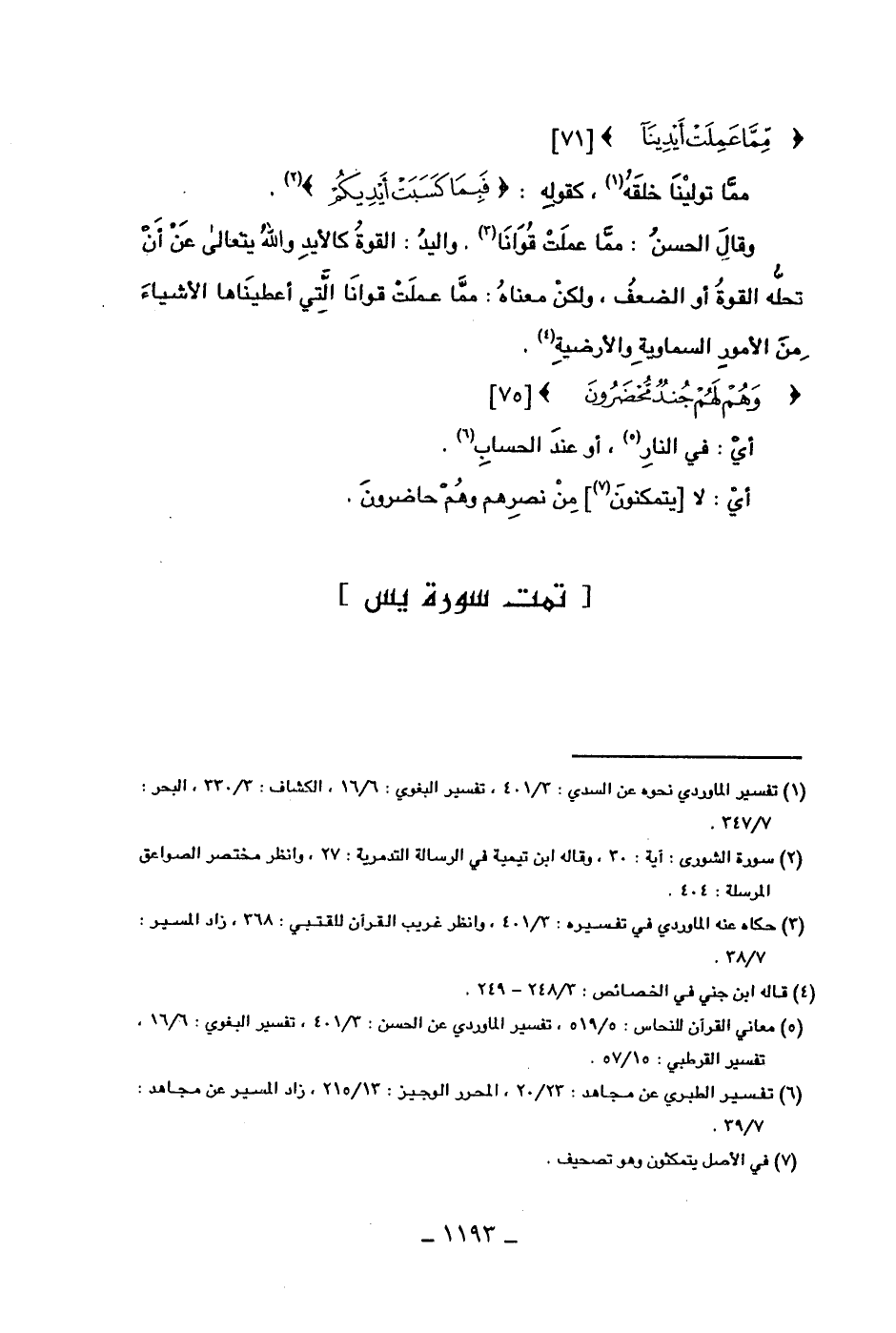 وقال الحسن: مما عملت قوانا. واليد: القوة كالأيد والله يتعالى عن أن تحله القوة أو الضعف، ولكن معناه: مما عملت قوانا التي أعطيناها الأشياء من الأمور السماوية والأرضية.