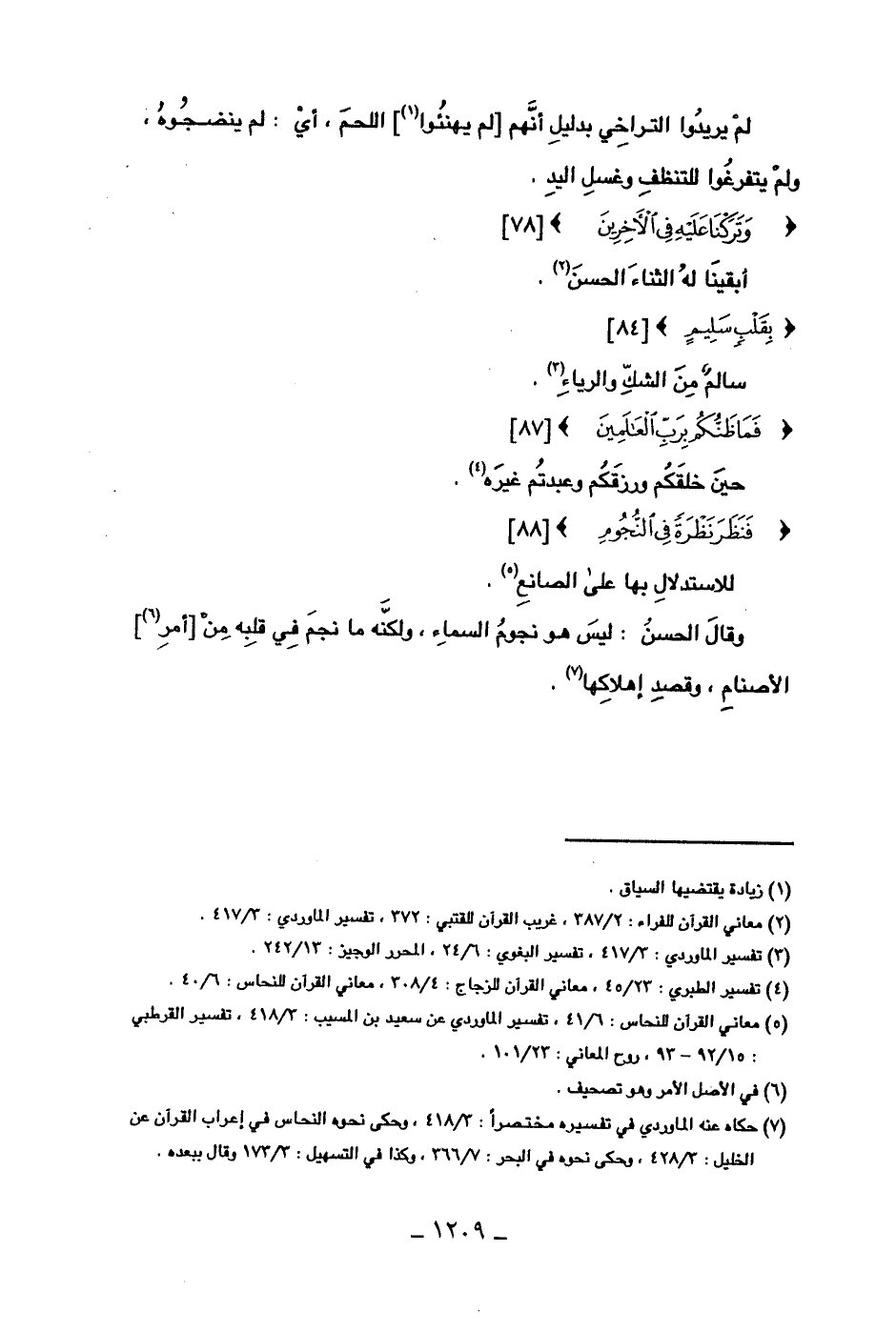 وقال الحسن: ليس هو نجوم السماء، ولكنه ما نجم في قلبه من [أمر] الأصنام، وقصد إهلاكها.