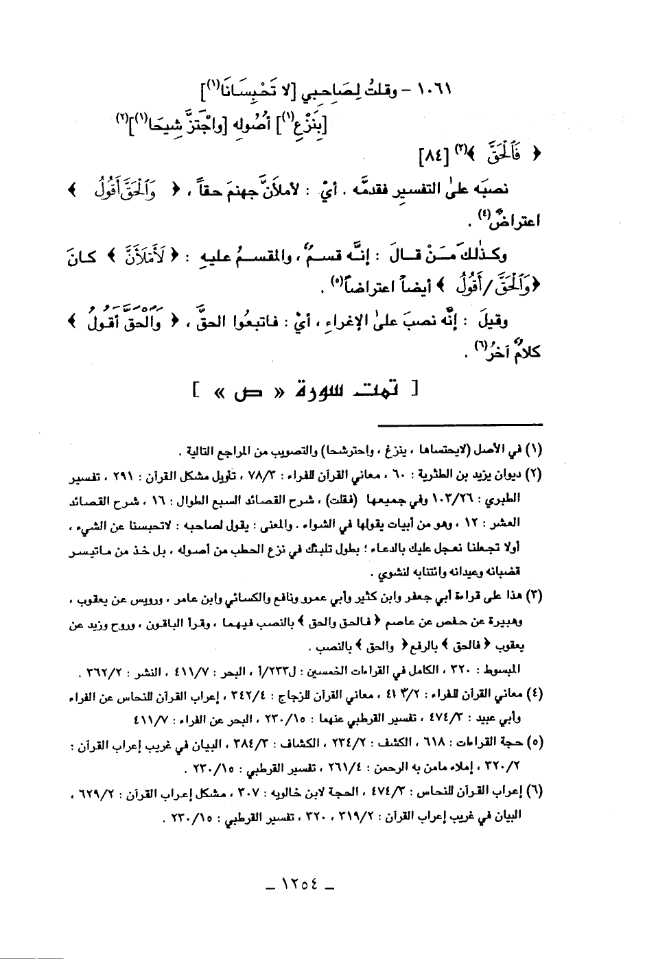وقيل: إنه نصب على الإغراء، أي: فاتبعوا الحق، (والحق أقول) كلام آخر.