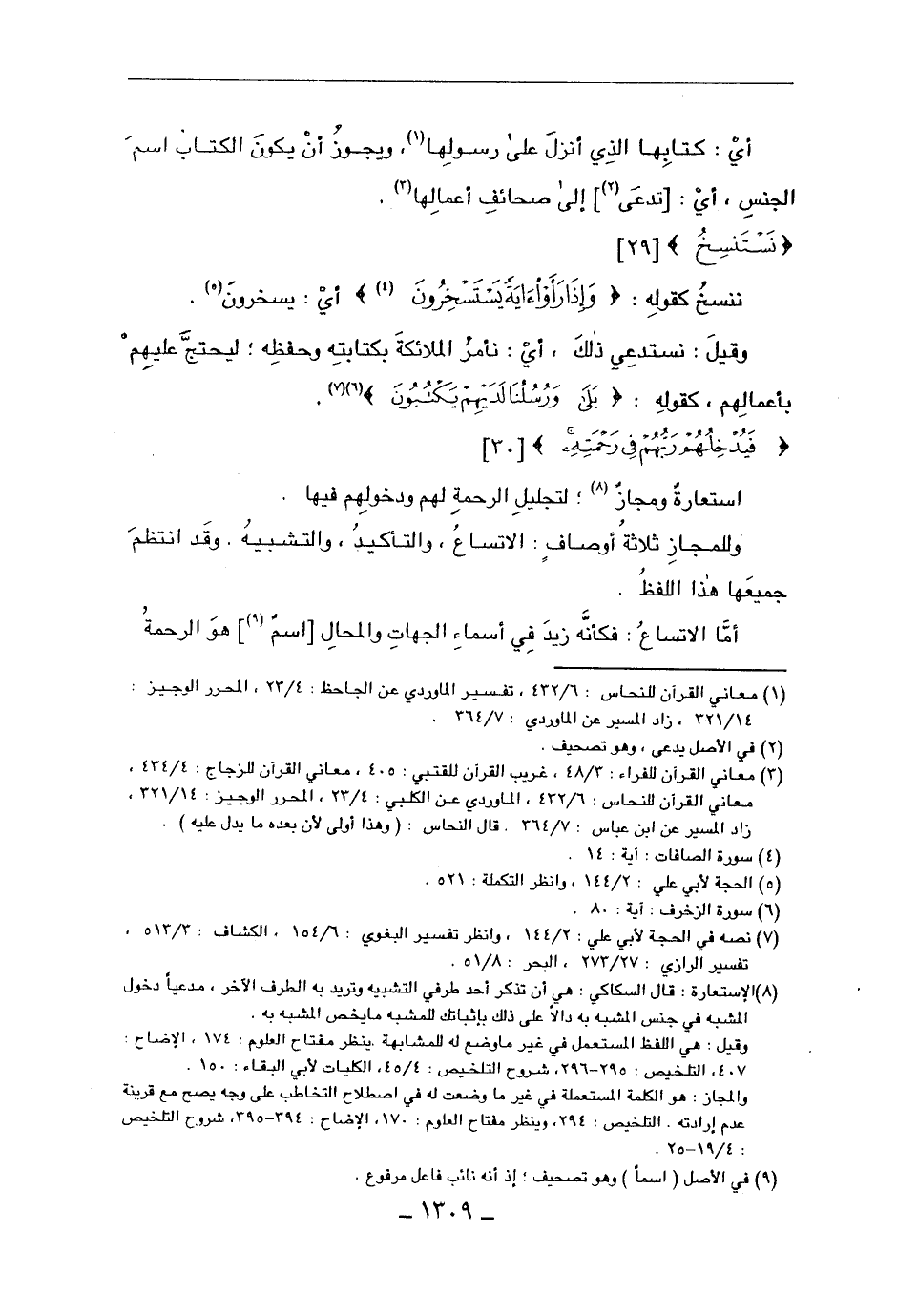 وللمجاز ثلاثة أوصاف: الاتساع، والتأكيد، والتشبيه. وقد انتظم جميعها هذا اللفظ.