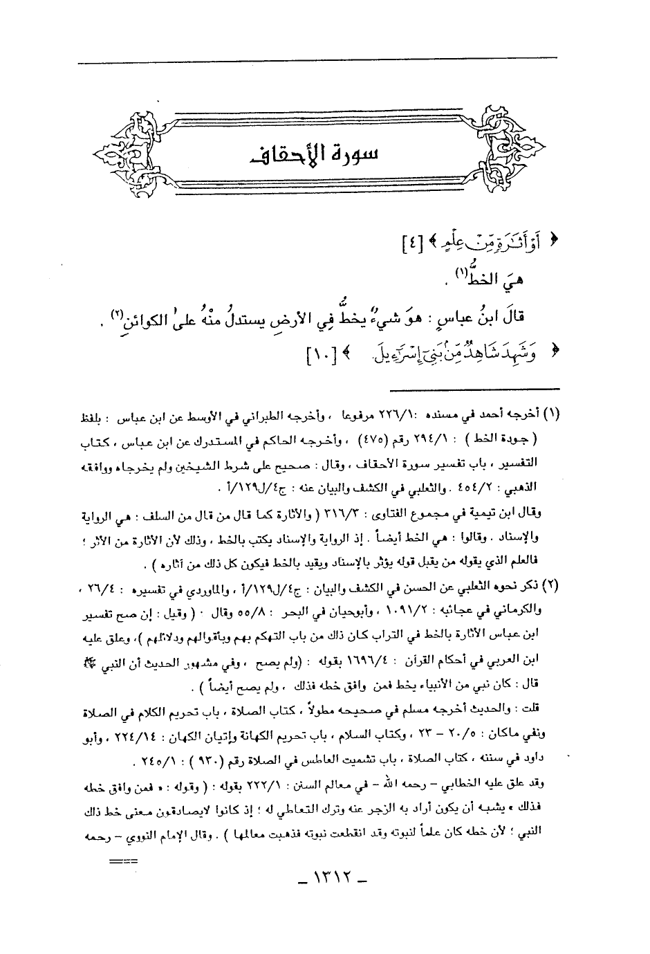 قال ابن عباس: هو شيء يخط في الأرض يستدل منه على الكوائن.