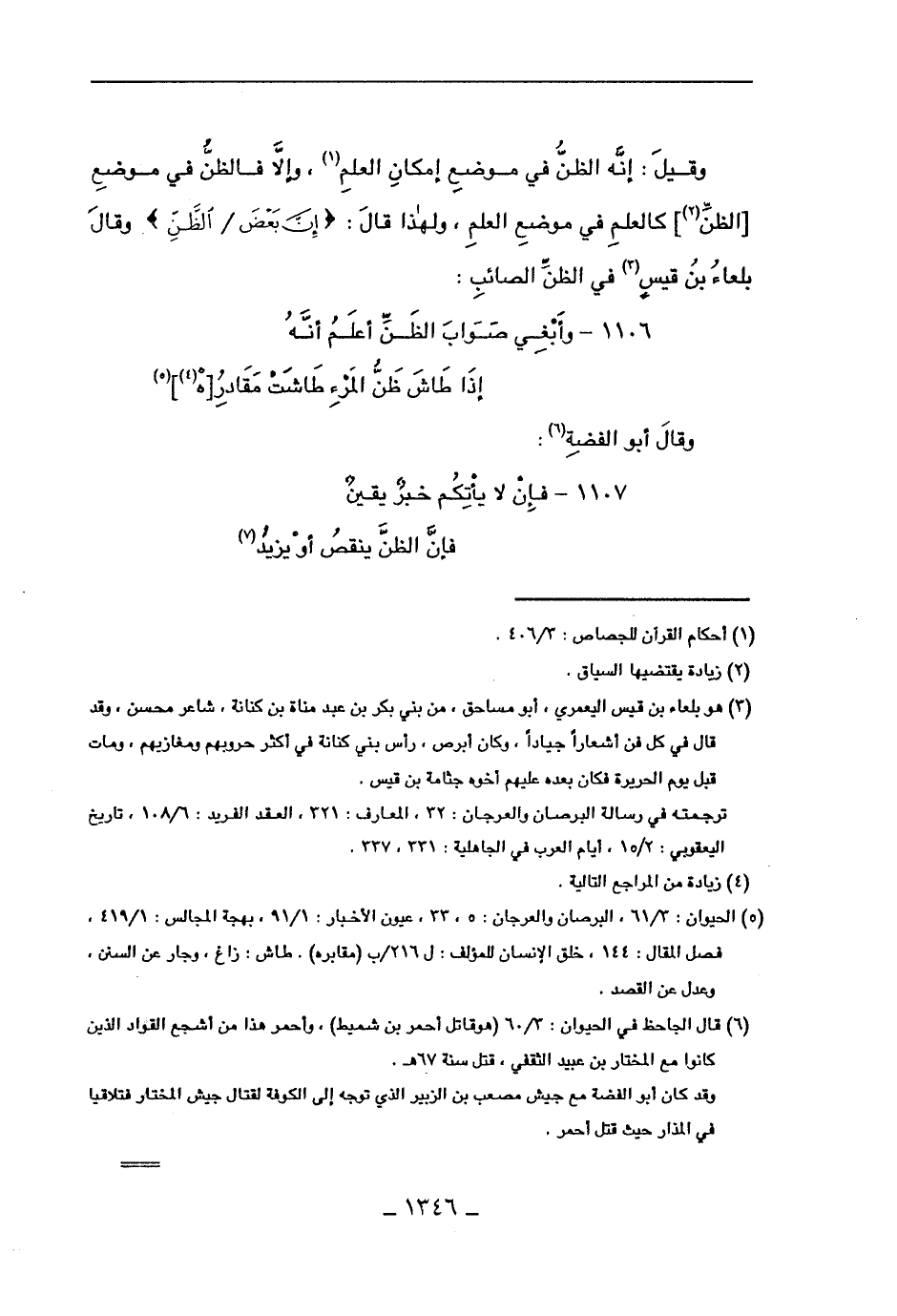 1106 - وأبغي صواب الظن أعلم أنه ... إذا طاش ظن المرء طاشت مقادر [هـ].