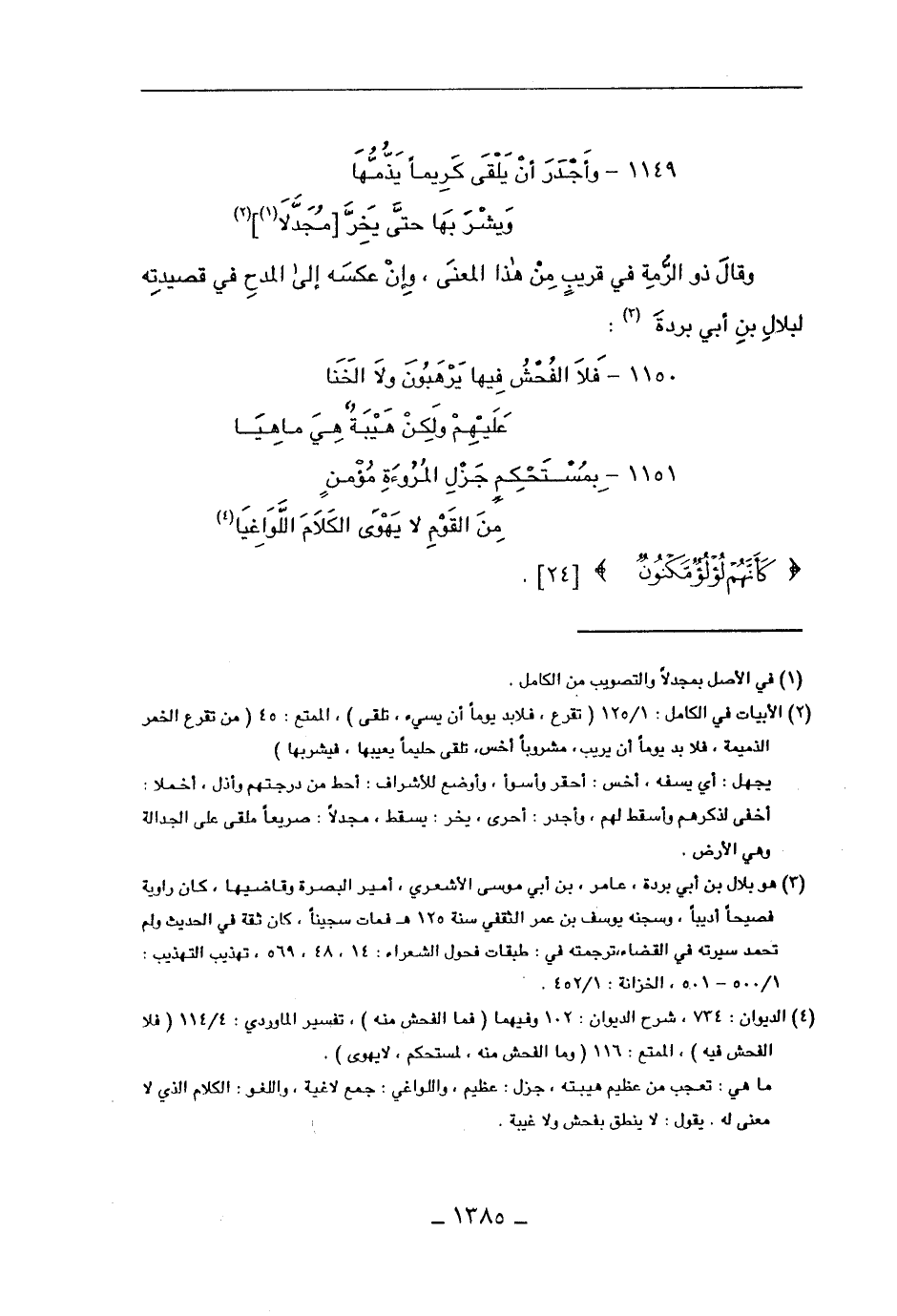 1151 - بمستحكم جزل المروءة مؤمن ... من القوم لا يهوى الكلام اللواغيا.