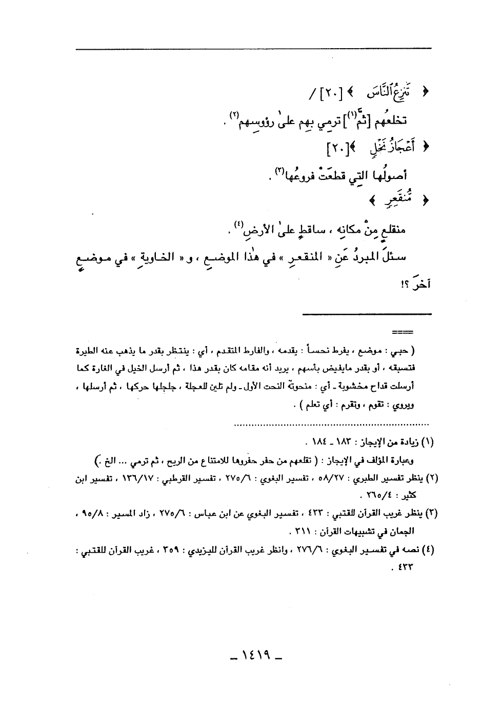 سئل المبرد عن "المنقعر" في هذا الموضع، و"الخاوية" في موضع آخر؟!