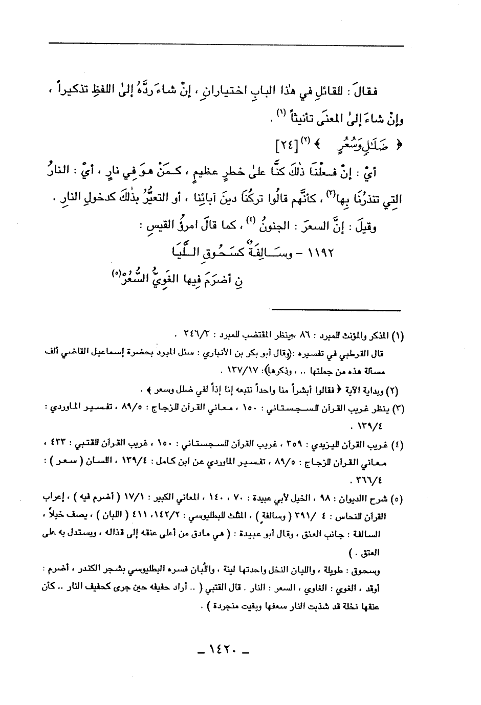 1192 - وسالفة كسحوق الليا ... ن أضرم فيها الغوي السعر
