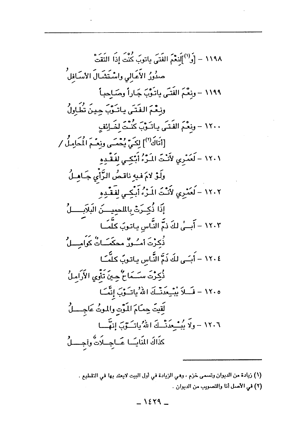 1199 - ونعم الفتى ياتوب جاراً وصاحباً ... ونعم الفتى ياتوب حين تطاول