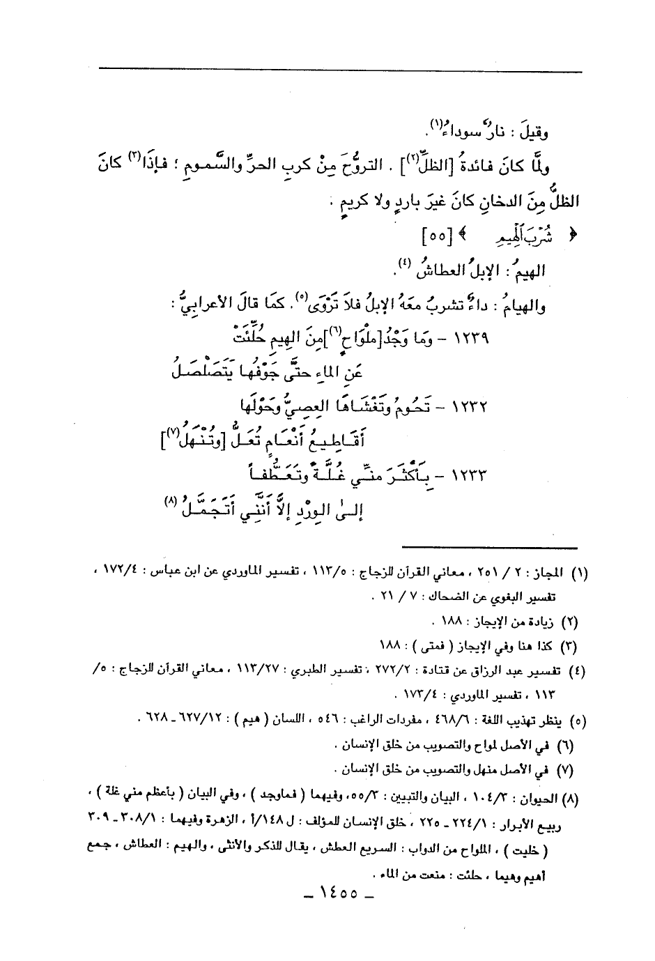 والهيام: داء تشرب معه الإبل فلا تروى. كما قال الأعرابي: