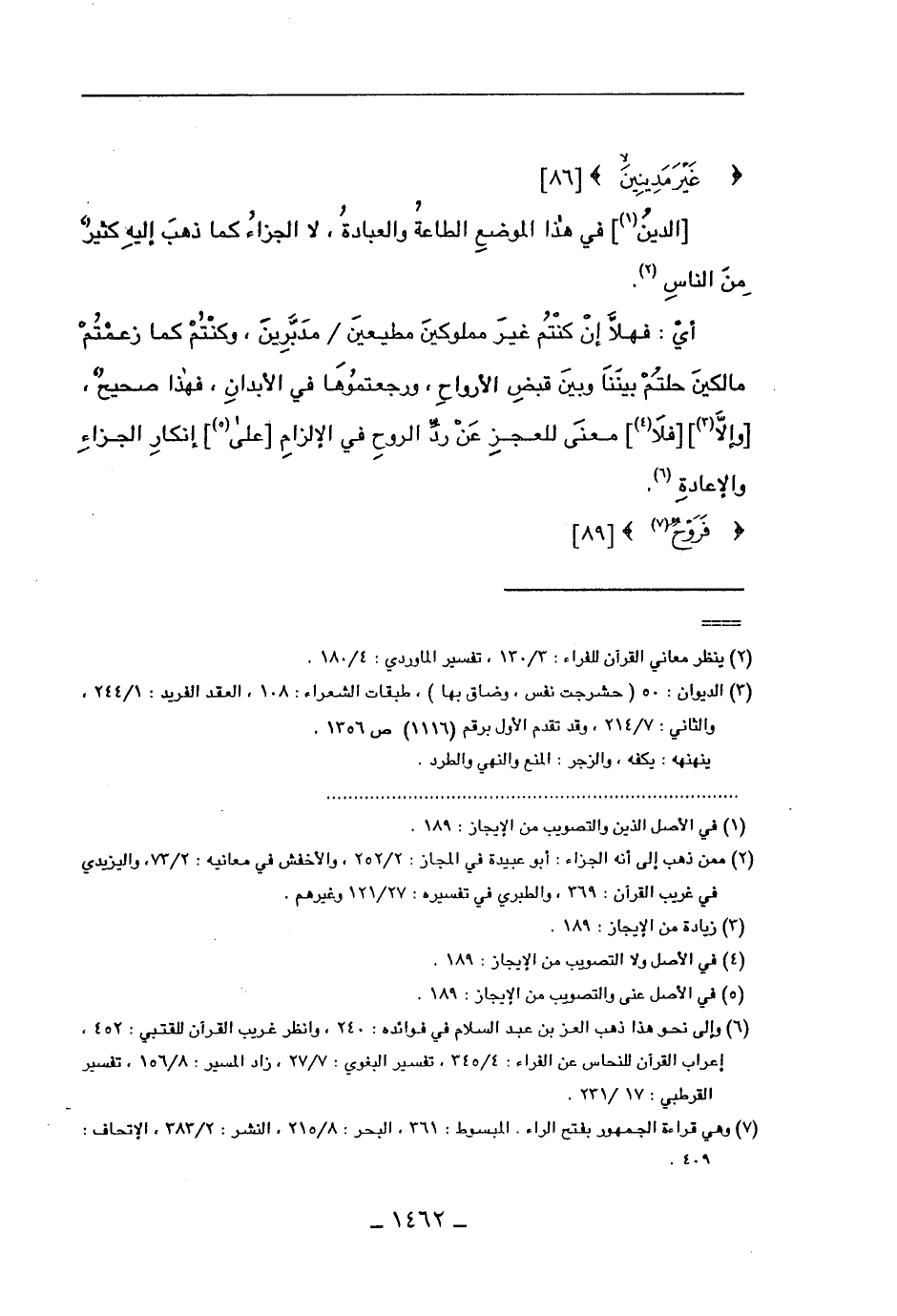 أي: فهلا إن كنتم غير مملوكين مطيعين مدبرين، وكنتم كما زعمتم مالكين حلتم بيننا وبين قبض الأرواح، ورجعتموها في الأبدان، فهذا صحيح، [وإلا] [فلا] معنى للعجز عن رد الروح في الإلزام [على] إنكار الجزاء والإعادة.