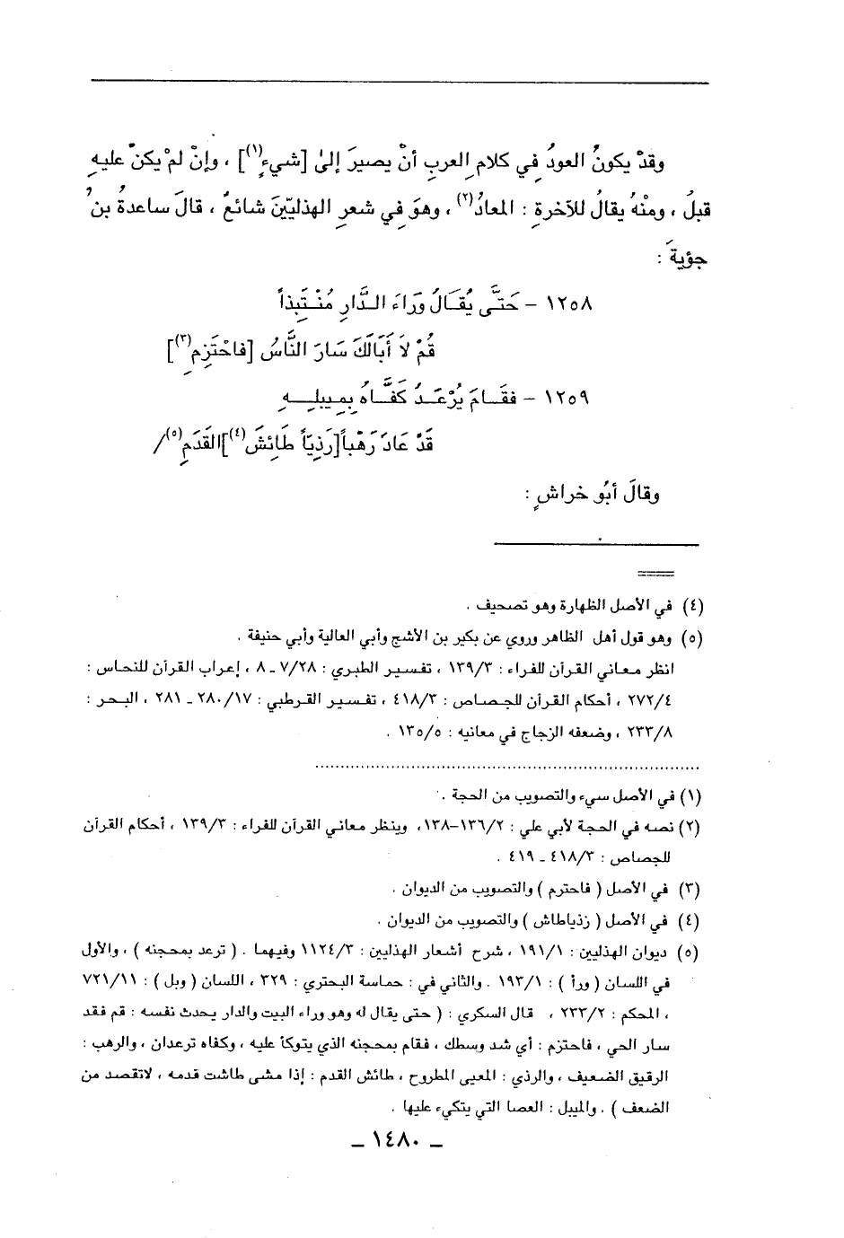 وقد يكون العود في كلام العرب أن يصير إلى [شيء]، وإن لم يكن عليه قبل، ومنه يقال للآخرة: المعاد، وهو في شعر الهذليين شائع، قال ساعدة بن جؤية: