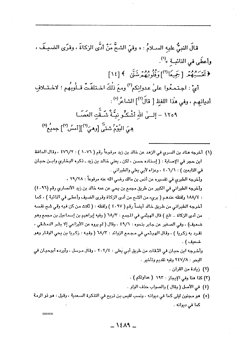 قال النبي عليه السلام: "وقي الشح من أدى الزكاة، وقرى الضيف، وأعطى في النائبة".