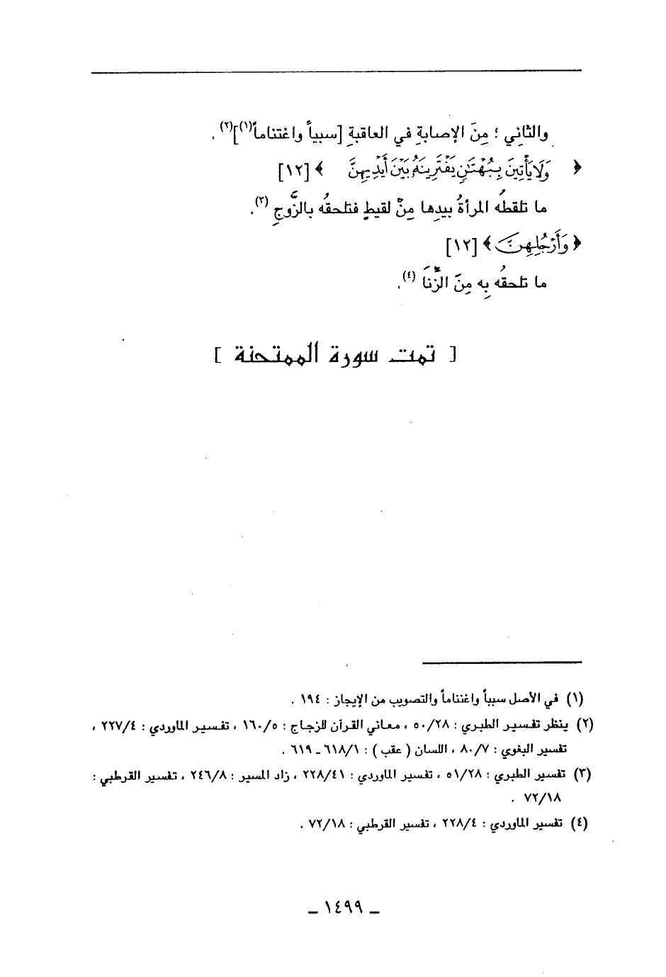 والثاني، من الإصابة في العاقبة [سبياً واغتناماً].