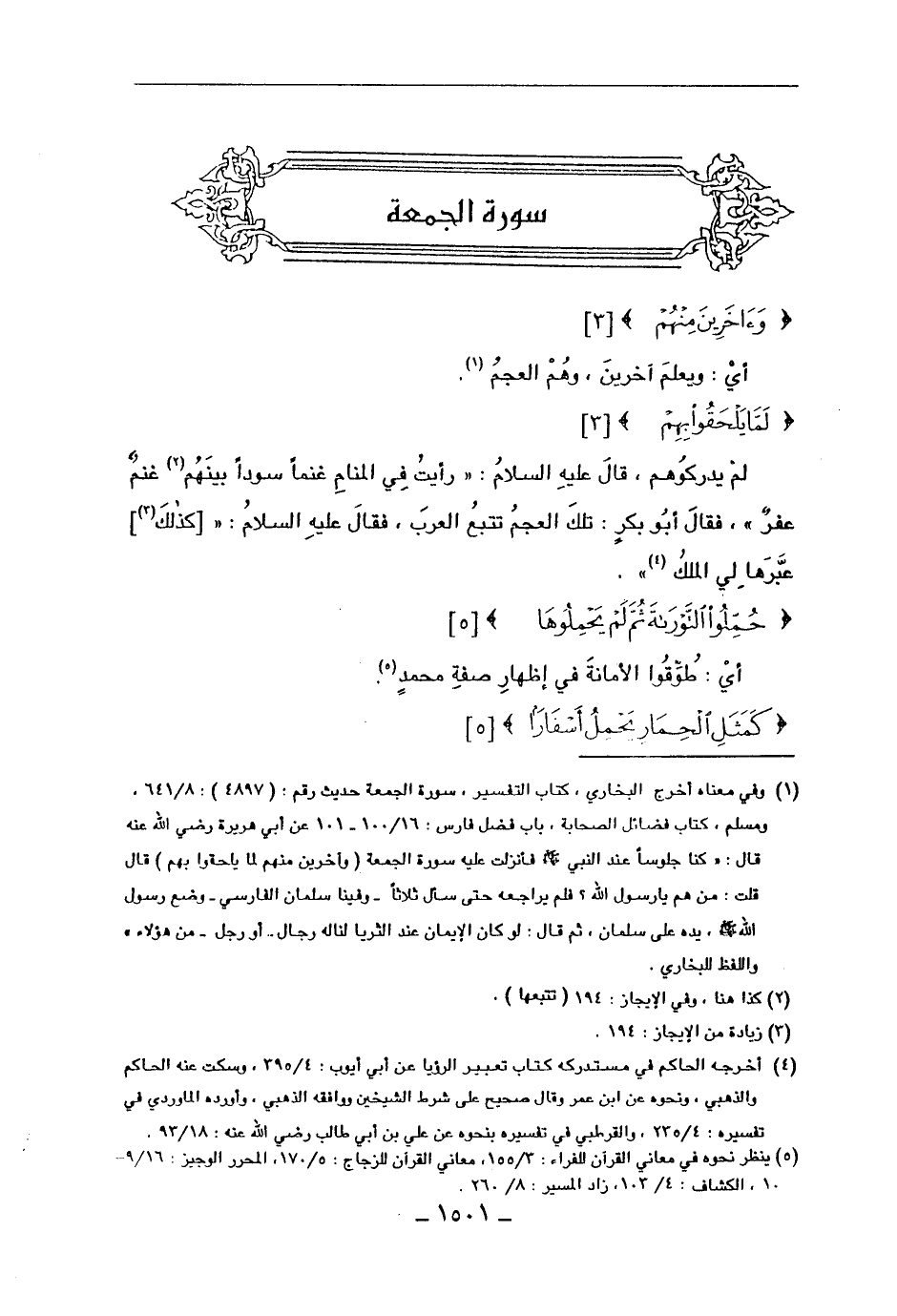 لم يدركوهم، قال عليه السلام: "رأيت في المنام غنماً سوداً بينهم غنم عفر"، فقال أبو بكر: تلك العجم تتبع العرب، فقال عليه السلام: " [كذلك] عبرها لي الملك".