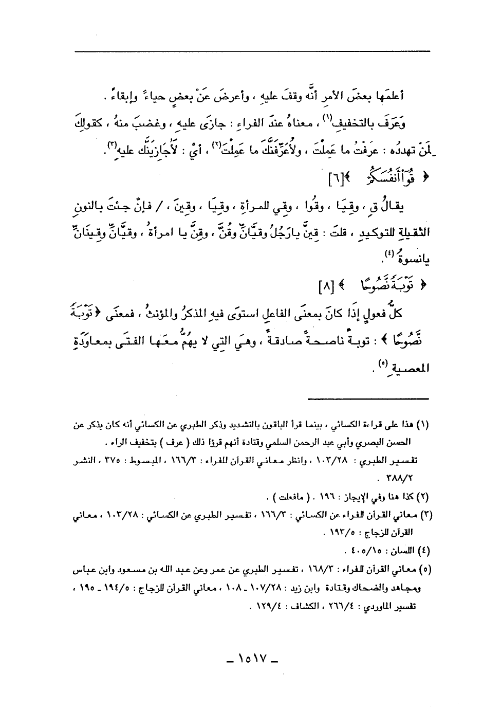 كل فعول إذا كان بمعنى الفاعل استوى فيه المذكر والمؤنث، فمعنى (توبة نصوحاً): توبة ناصحة صادقة، وهي التي لا يهم معها الفتى بمعاودة المعصية.