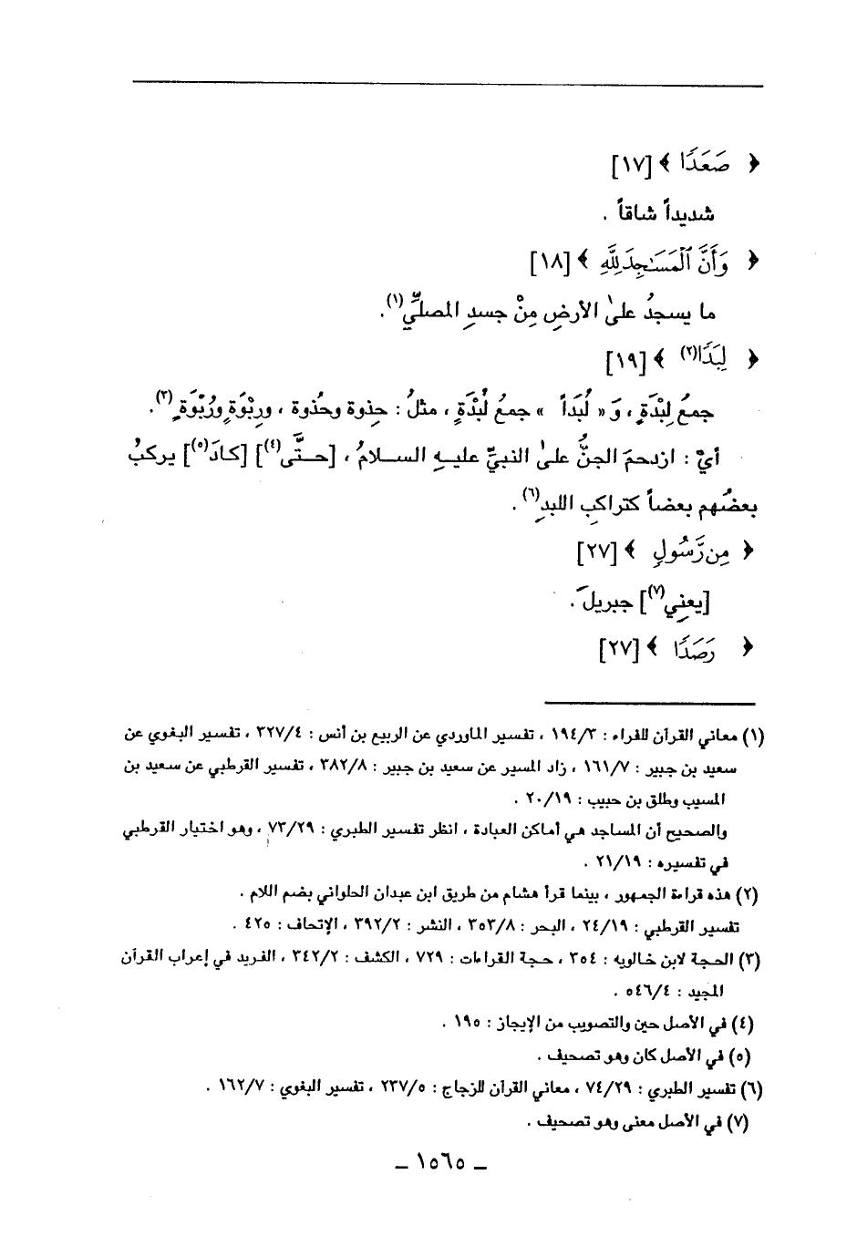 جمع لبدة، و"لبداً" جمع لبدة، مثل: حذوة وحذوة، وربوة وربوة. أي: ازدحم الجن على النبي عليه السلام، [حتى] [كاد] يركب بعضهم بعضاً كتراكب اللبد.