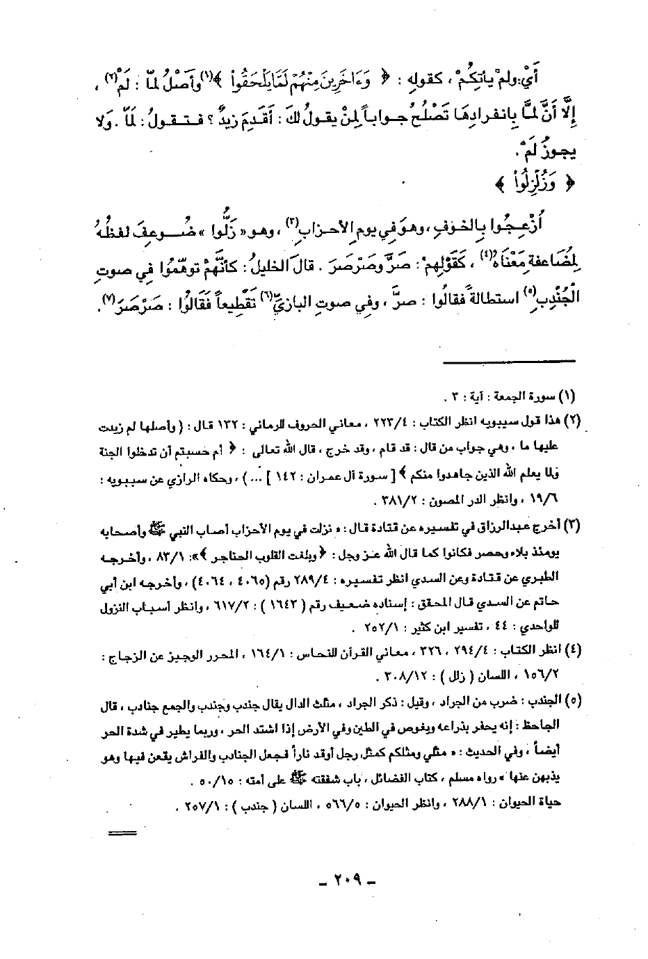 ازعجوا بالخوف، وهو في يوم الأحزاب، وهو "زلوا" ضوعف لفظه لمضاعفة معناه، كقولهم صر وصرصر. قال الخليل: كأنهم توهموا في صوت الجندب استطالة فقالوا: صر وفي صوت البازي تقطيعا فقالوا: صرصر.
