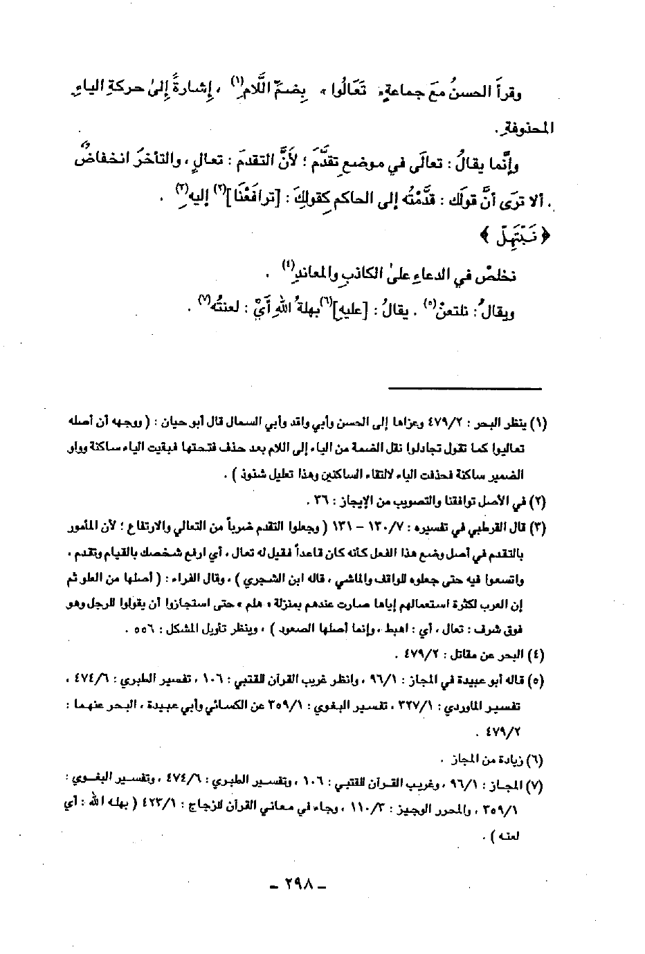 وقرأ الحسن مع جماعة "تعالوا" بضم اللام، إشارة إلى حركة الياء المحذوفة.