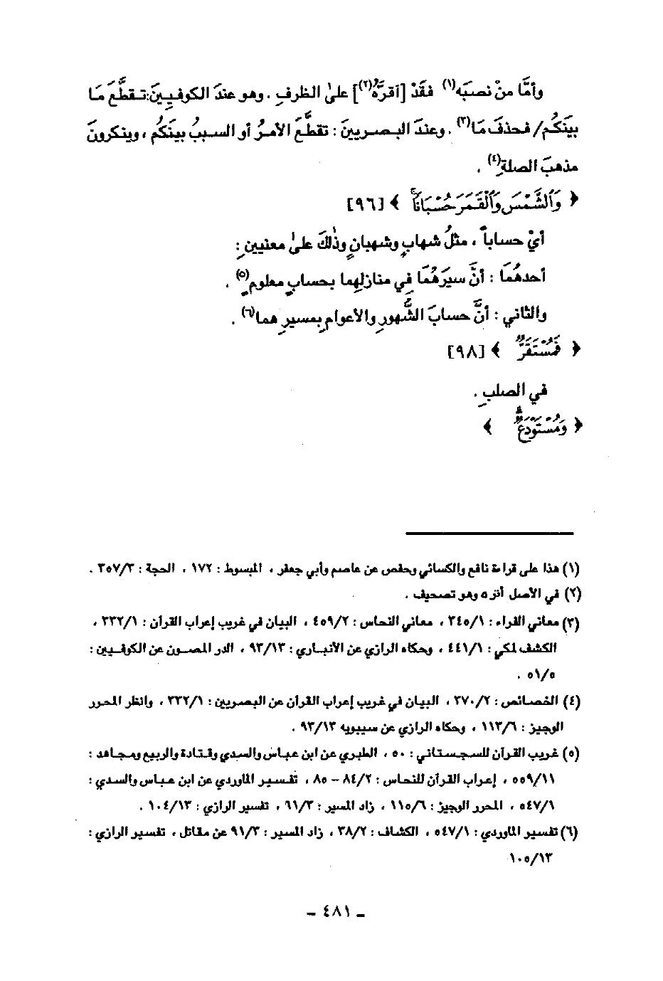 أحدهما: أنَّ سيرهما في منازلهما بحسابٍ معلومٍ.