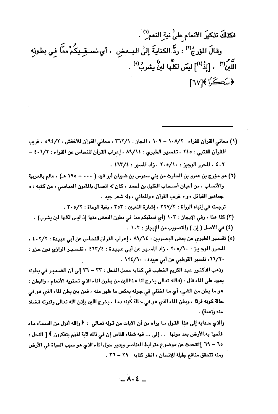 وقال المؤرج: رد الكناية إلى البعض، أي: نسقيكم مما في بطونه اللبن، [إذ] ليس لكلها لبن يشرب.