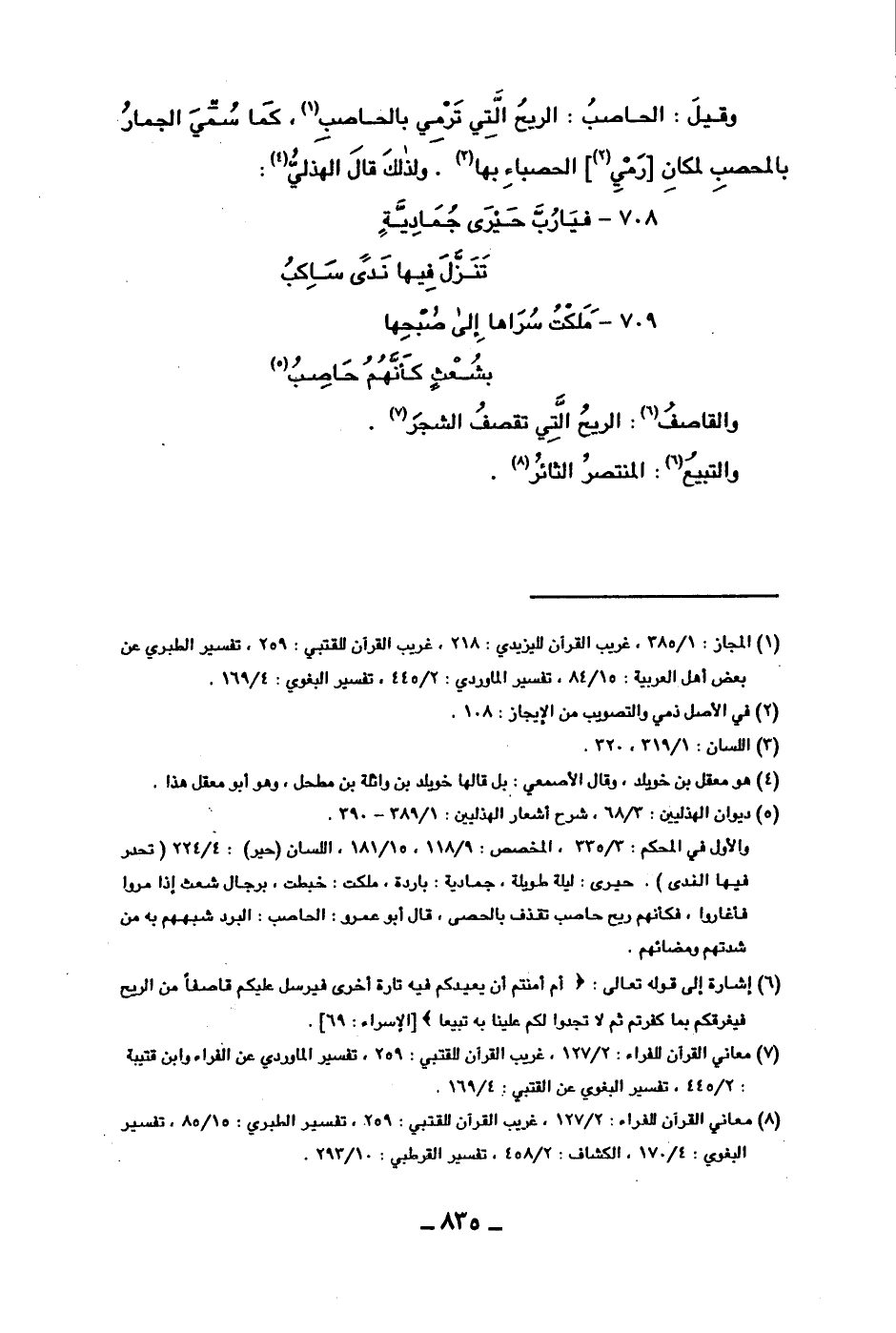 709 - ملكت سراها إلى صحبها ... بشعث كأنهم حاصب. والقاصف: الريح التي تقصف الشجر.