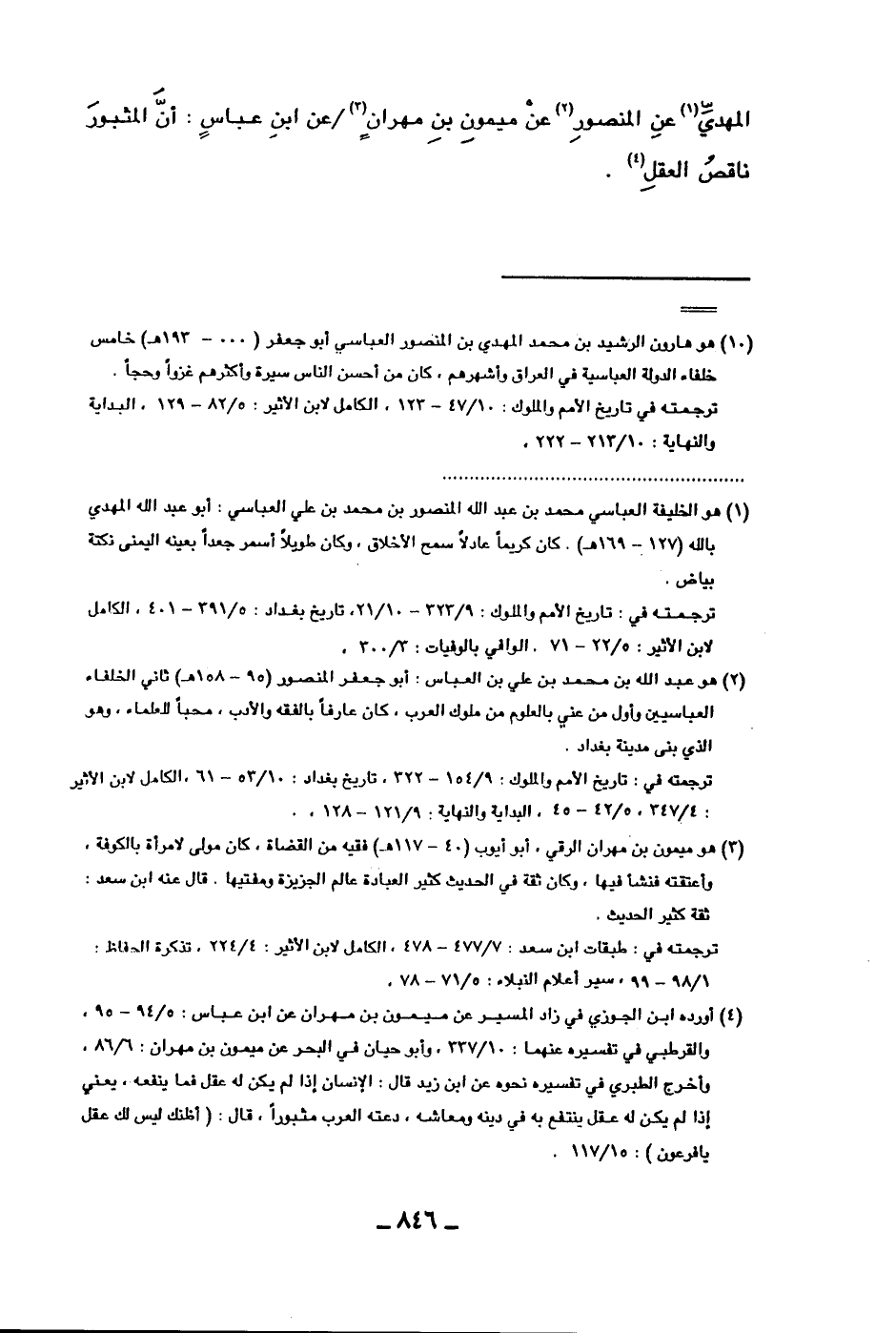 المهدي عن المنصور عن ميمون بن مهران عن ابن عباس: أن المثبور ناقص العقل.