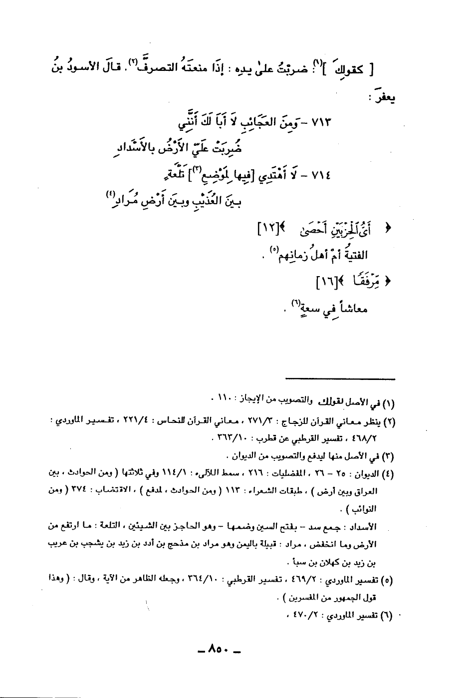 714 - لا أهتدي [فيها لموضع] تلعة ... بين بين العذيب وبين أرض مراد.