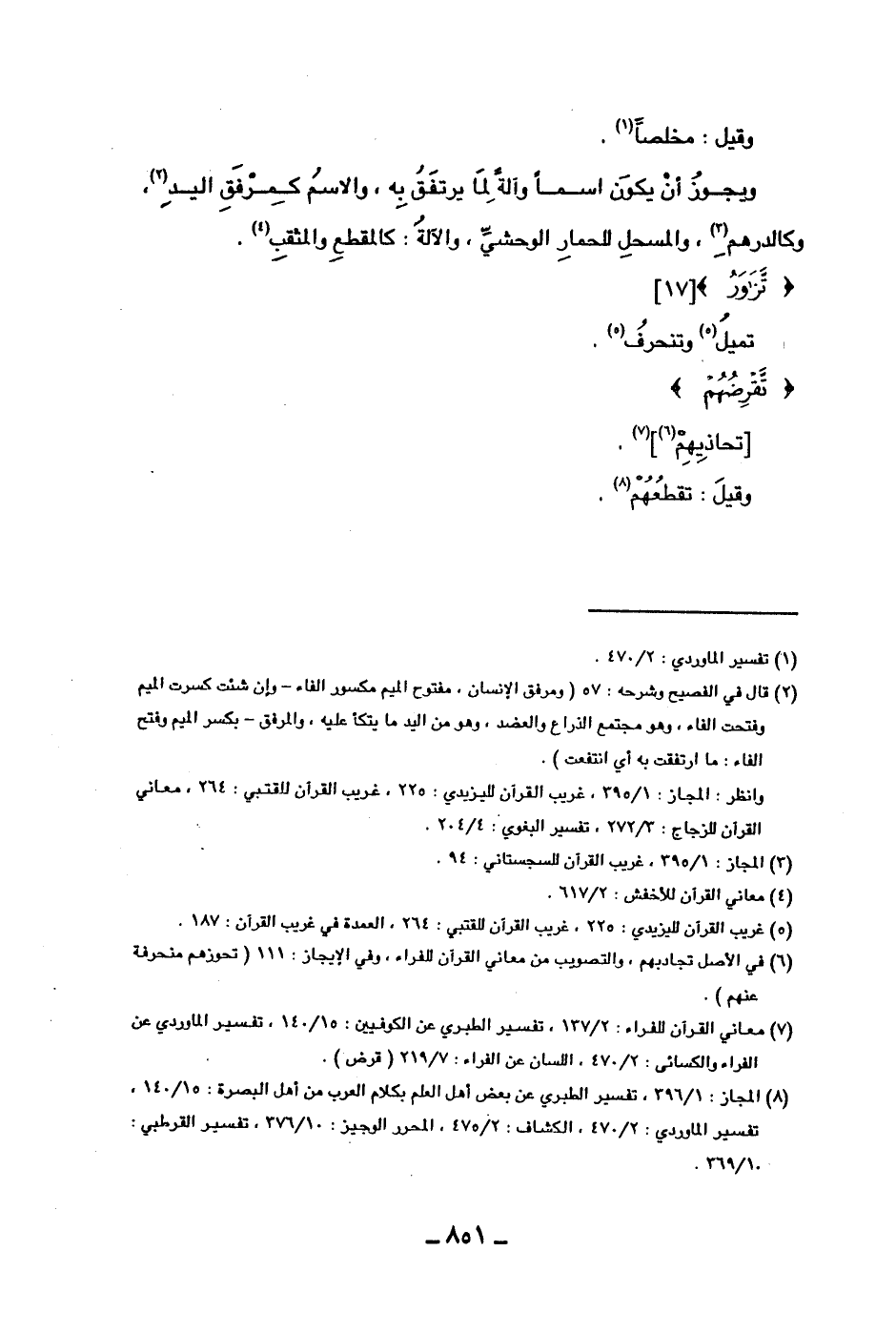 ويجوز أن يكون اسماً وآلة لما يرتفق به، والاسم كمرفق اليد، وكالدرهم، والمسحل للحمار الوحشي، والآلة: كالمقطع والمثقب.