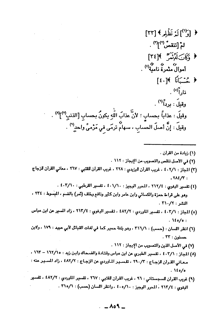 وقيل: عذاباً بحساب، لأن عذاب الله يكون بحساب [الذنب]. وقيل: إن أصل الحساب، سهام ترمى في مرمى واحد.