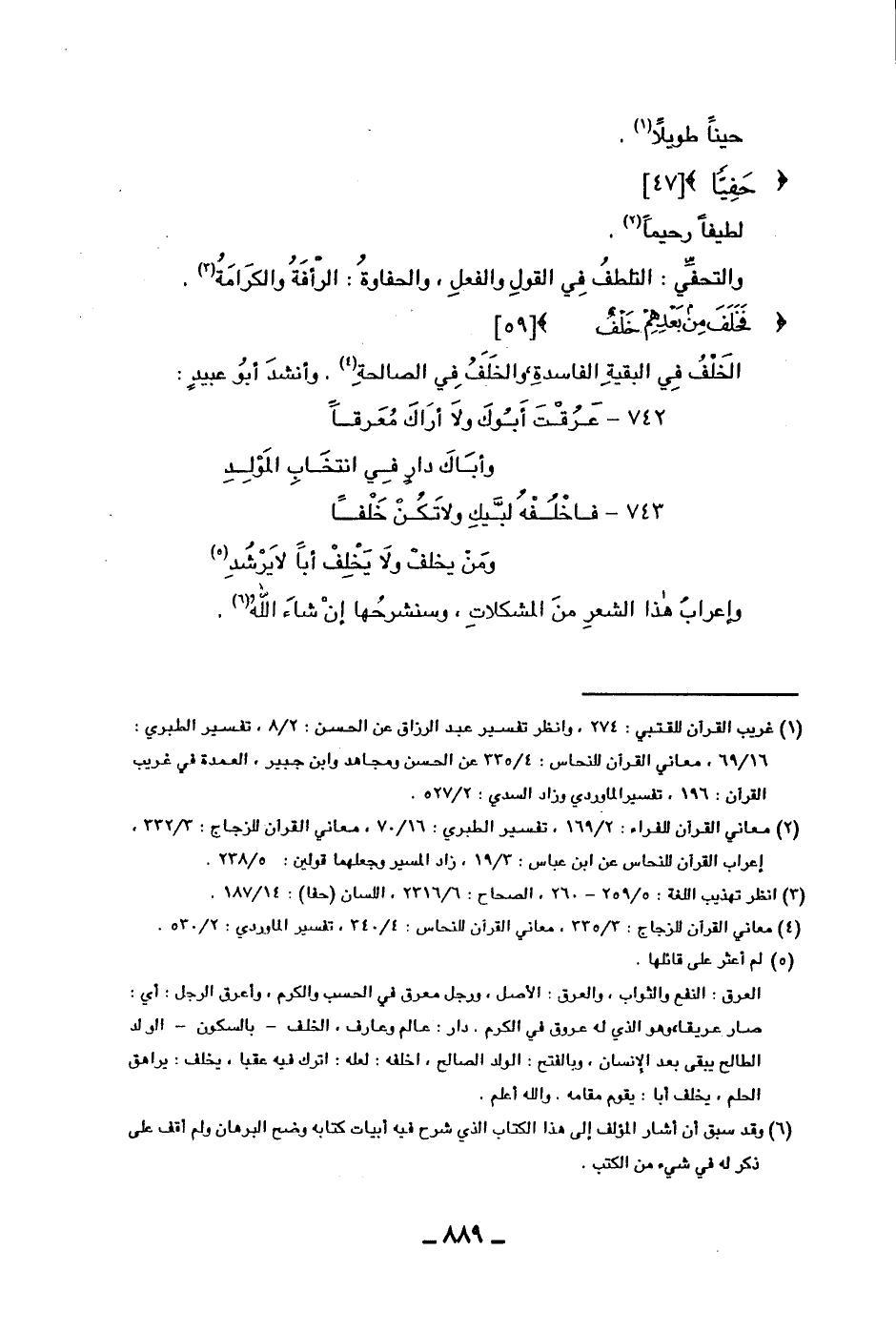 والتحفي: التلطف في القول والفعل، والحفاوة: الرأفة والكرامة. (فخلف من بعدهم خلف)