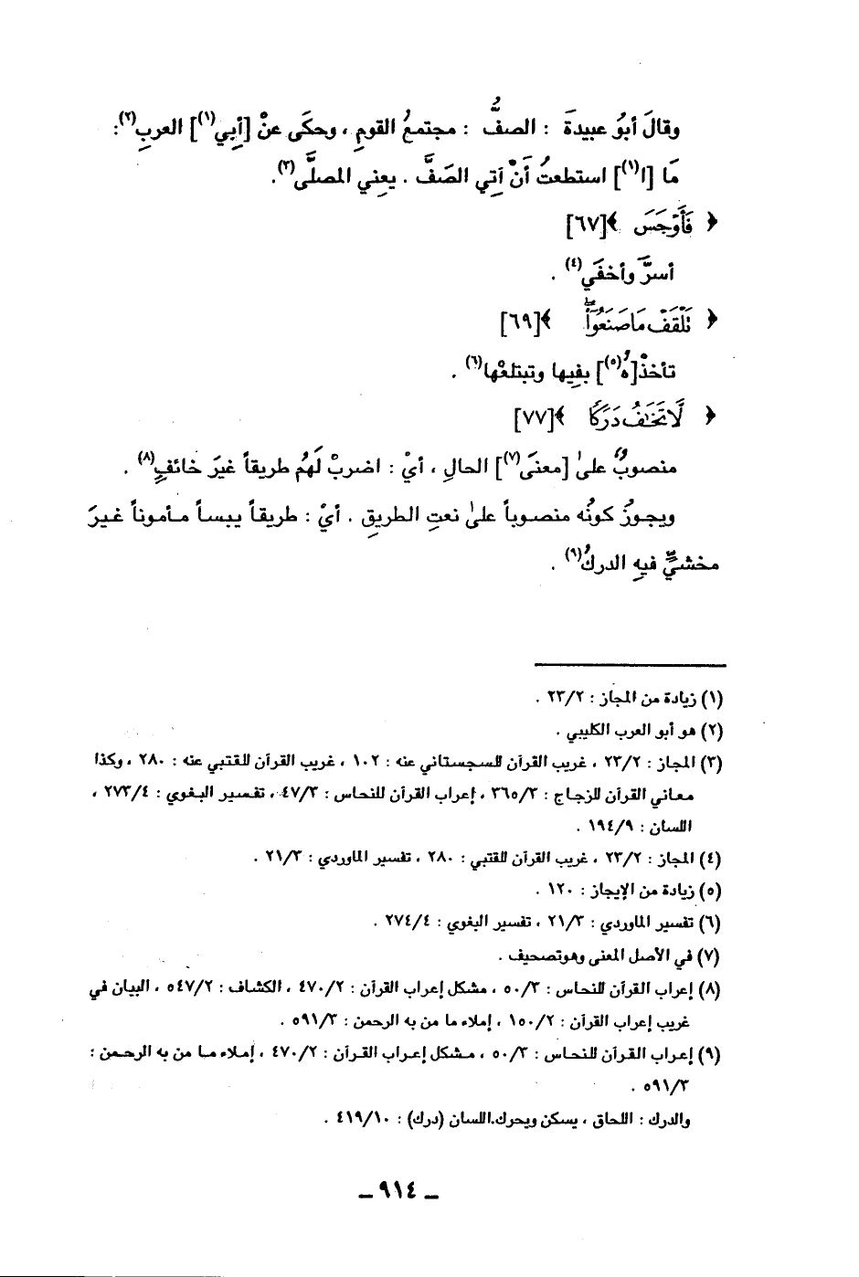وقال أبو عبيدة: الصف: مجتمع القوم، وحكى عن [أبي] العرب: ما [ا] استطعت أن آتي الصف، يعني المصلى.
