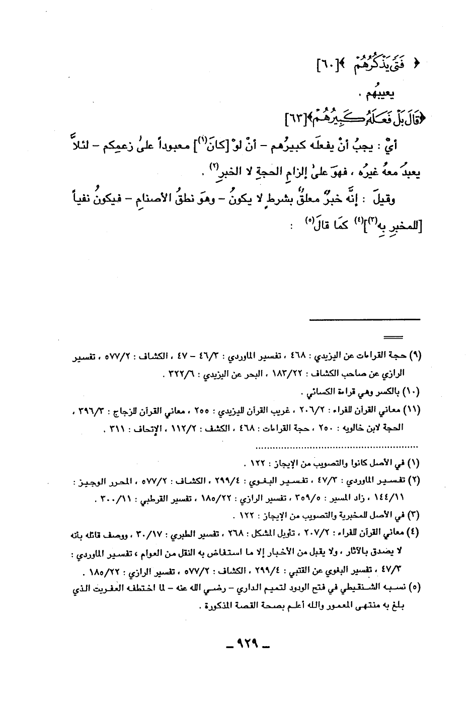 أي: يجب أن يفعله كبيرهم -أن لو [كان] معبوداً على زعمكم- لئلا يعبد معه غيره، فهو على إلزام الحجة لا الخبر. وقيل: إنه خبر معلق بشرط لا يكون -وهو نطق الأصنام- فيكون نفياً [للمخبر به] كما قال: