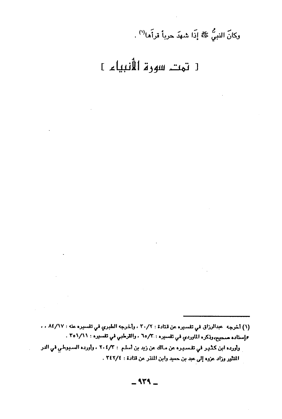 وكان النبي صلى الله عليه وسلم إذا شهد حرباً قرأها.