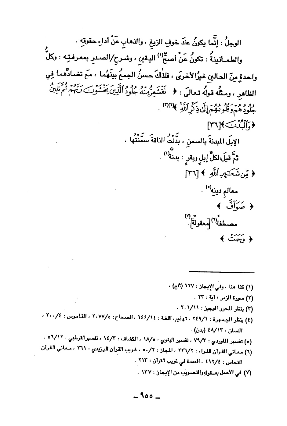 الوجل: إنما يكون عند خوف الزيغ، والذهاب عن أداء حقوقه. والطمأنينة: تكون عن أصح اليقين، وشرح الصدر بمعرفته: وكل واحدة من الحالين غير الأخرى، فلذلك حسن الجمع بينهما، مع تضادهما في الظاهر، ومثله قوله تعالى: (تقشعر منه جلود الذين يخشون ربهم ثم تلين جلودهم وقلوبهم إلى ذكر الله).