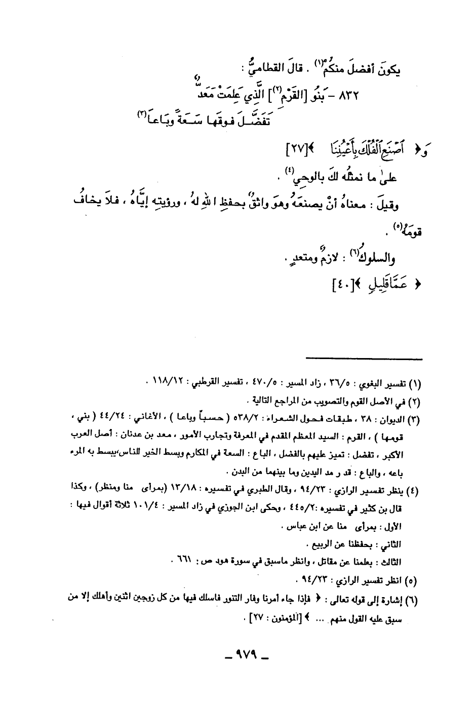 832 - بنو [القرم] الذي علمت معد ... تفضل فوقها سعة وباعا.