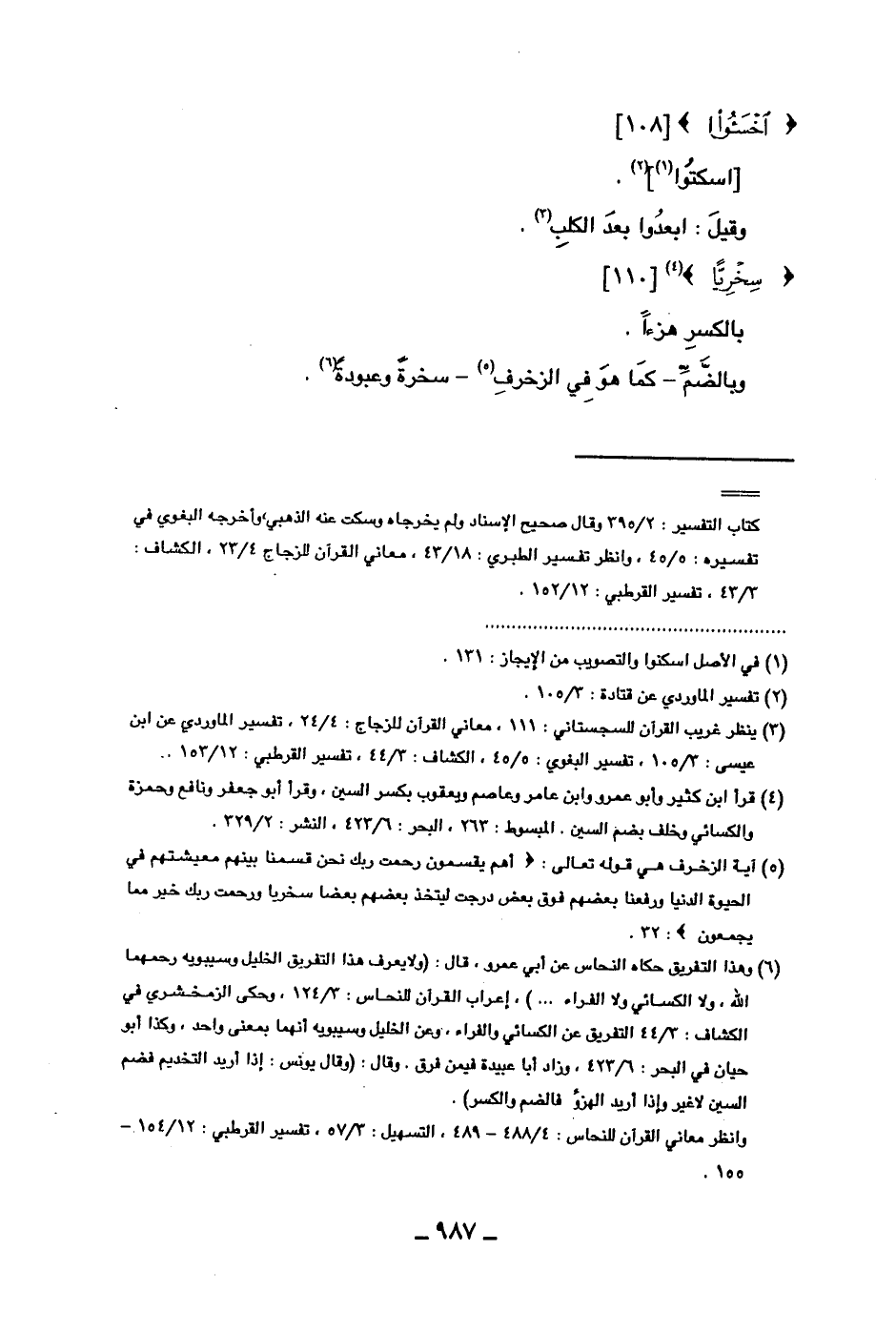 وبالضم -كما هو في الزخرف- سخرة وعبودة.