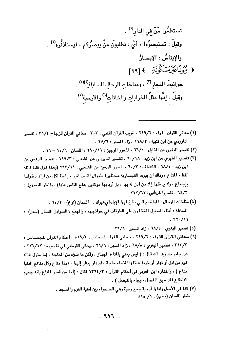 وقيل: إنها مثل الخرابات والخانات والأرحية.