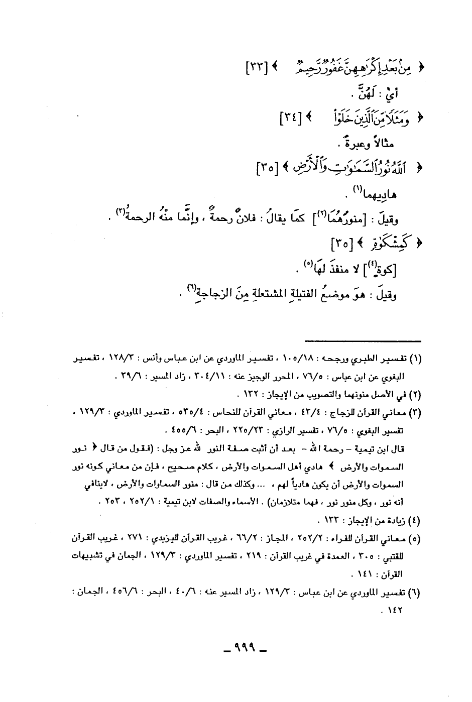 وقيل: [منورهما] كما يقال: فلان رحمة، وإنما منه الرحمة. (كمشكاة)