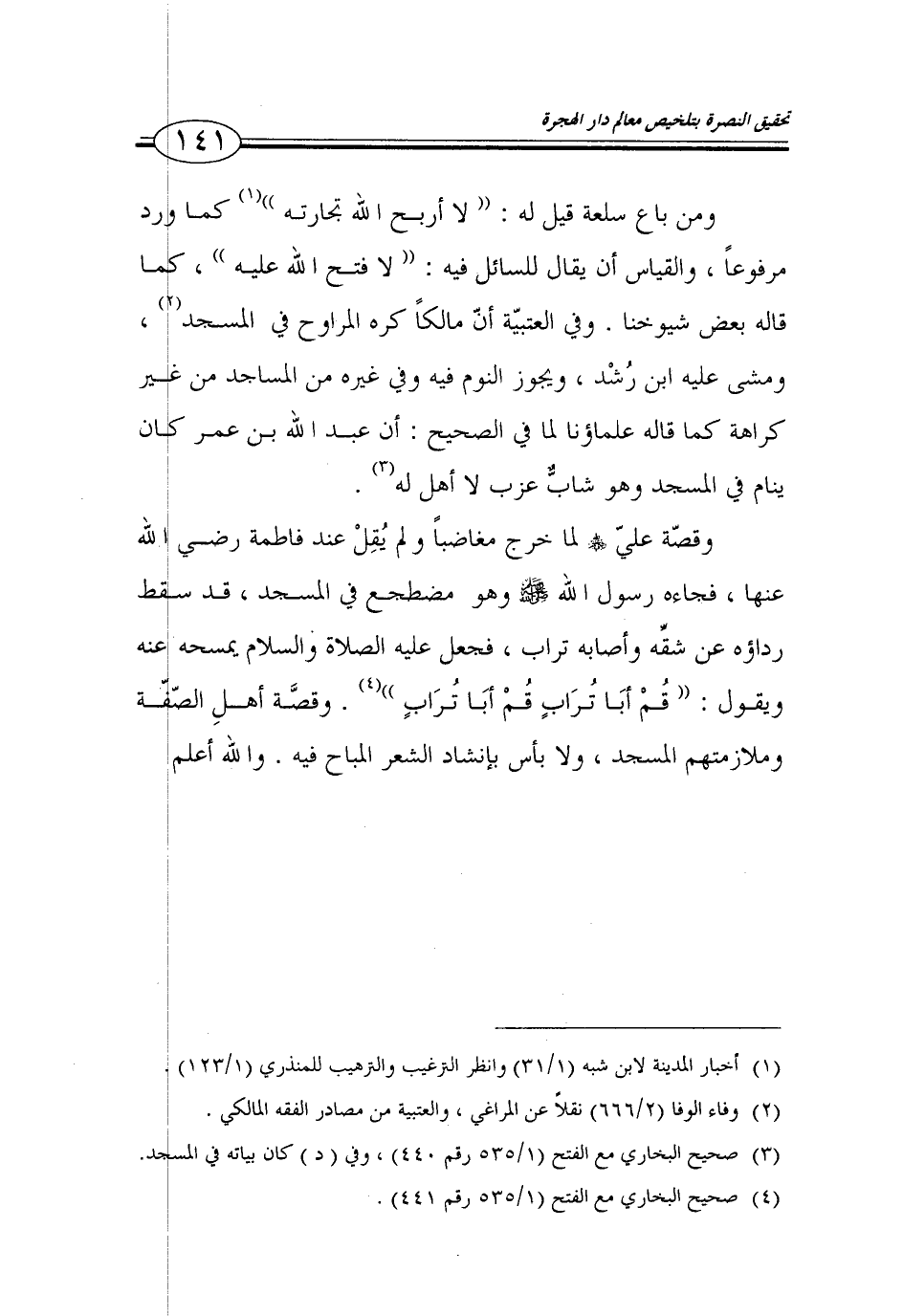 (1) أخبار المدينة لابن شبه (1/ 31) وانظر الترغيب والترهيب للمنذري (1/ 123).