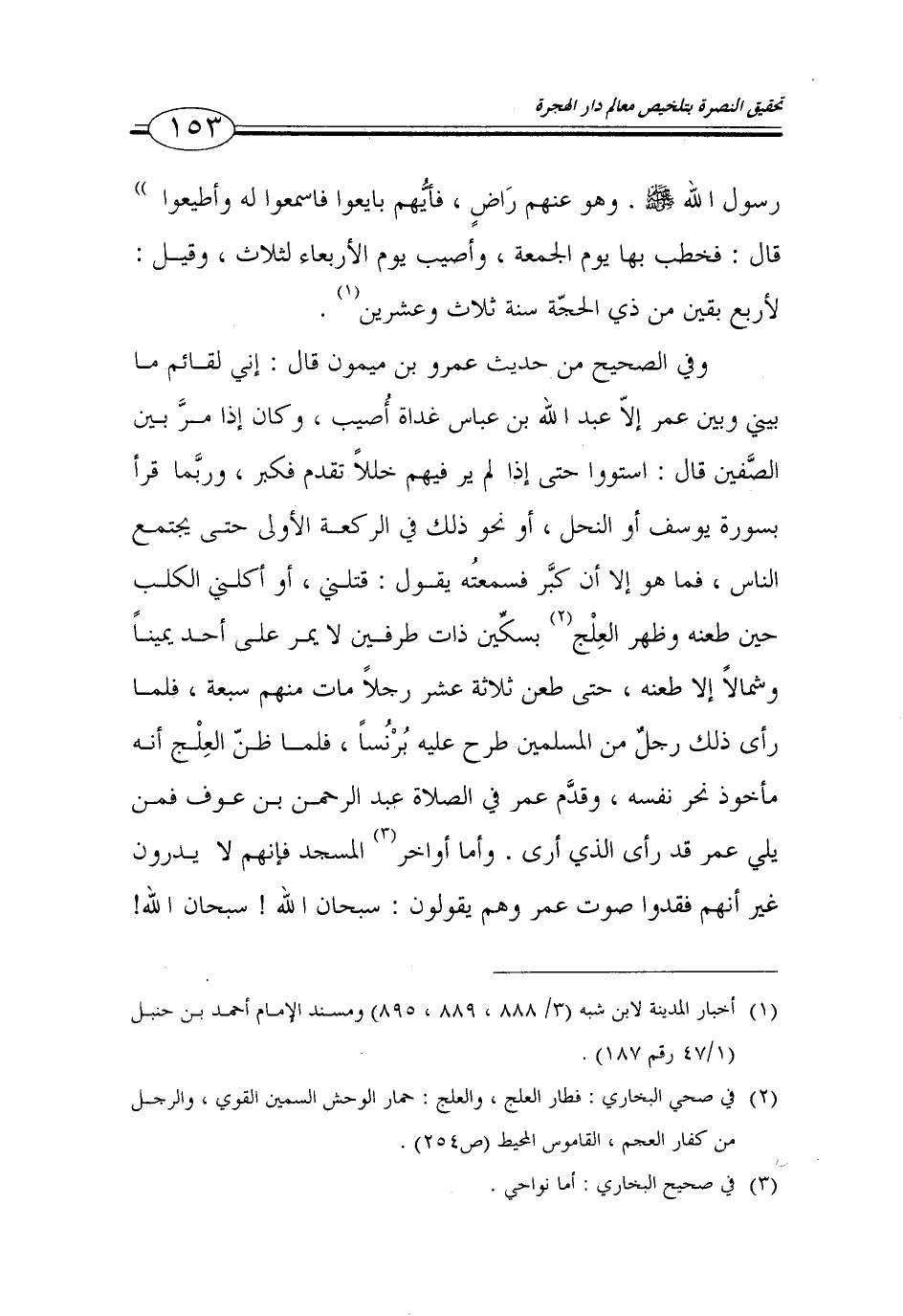 (1) أخبار المدينة لابن شبه (3/ 888، 889، 895) ومسند الإمام أحمد بن حنبل (1/ 47 رقم 187).