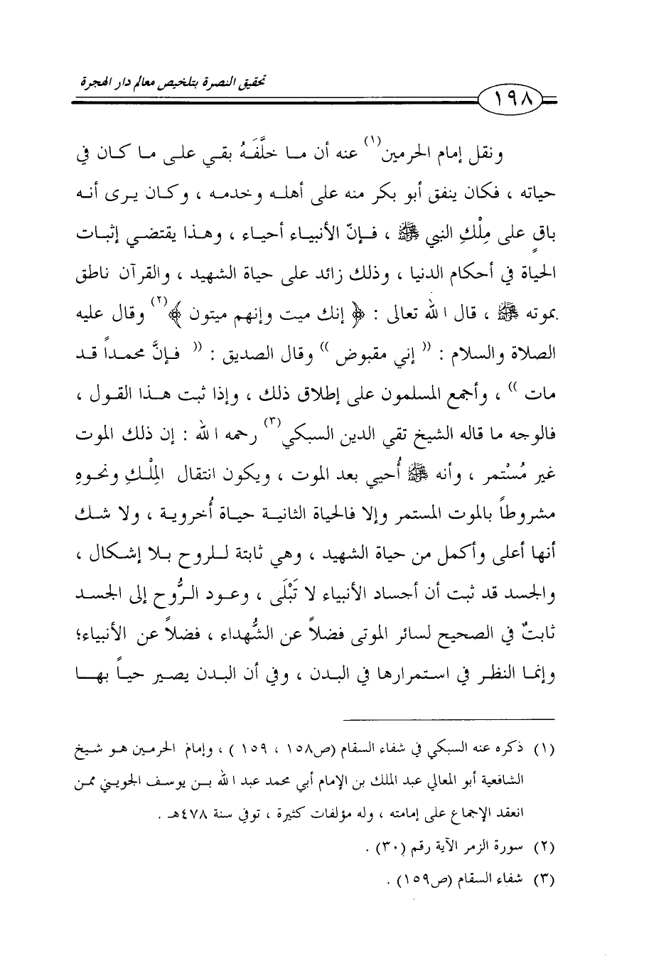 (1) ذكره عنه السبكي في شفاء السقام (ص158، 159)، وامام الحرمين هو شيخ الشافعية أبو المعالي عبد الملك بن الإمام أبي محمد عبد الله بن يوسف الجويني ممن انعقد الاجماع على امامته، وله مؤلفات كثيرة، توفي سنة 478هـ.