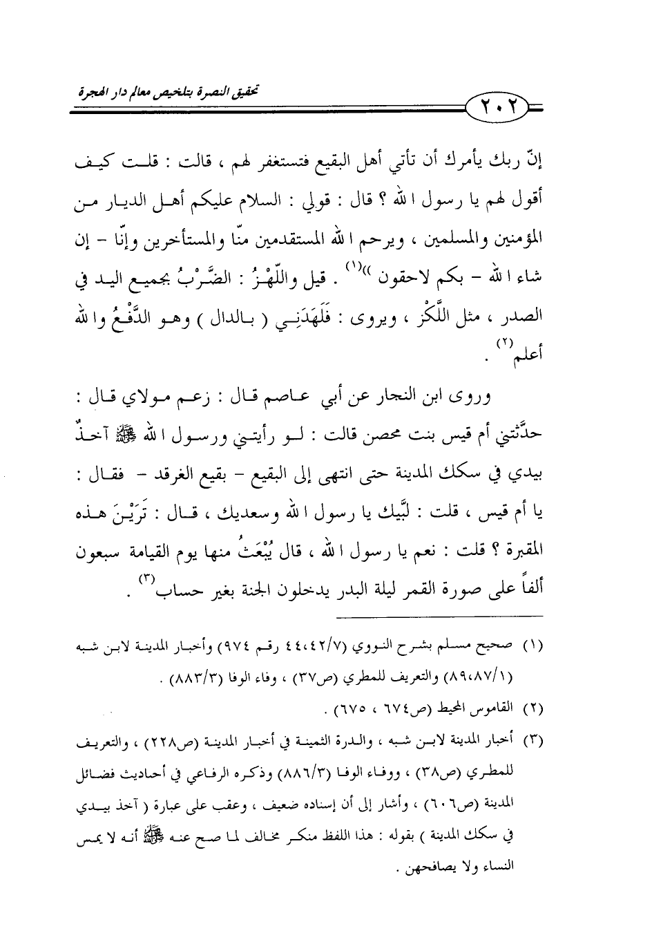 (1) صحيح مسلم بشرح النووي (7/ 42، 44 رقم 974) وأخبار المدينة لابن شبه (1/ 87، 89) والتعريف للمطري (ص 37)، وفاء الوفا (3/ 883).