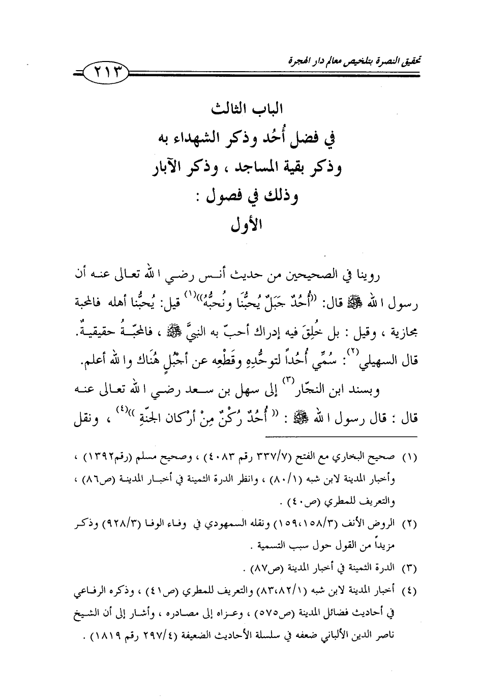 الباب الثالث في فضل أحد وذكر الشهداء به وذكر بقية المساجد، وذكر الآبار وذلك في فصول: